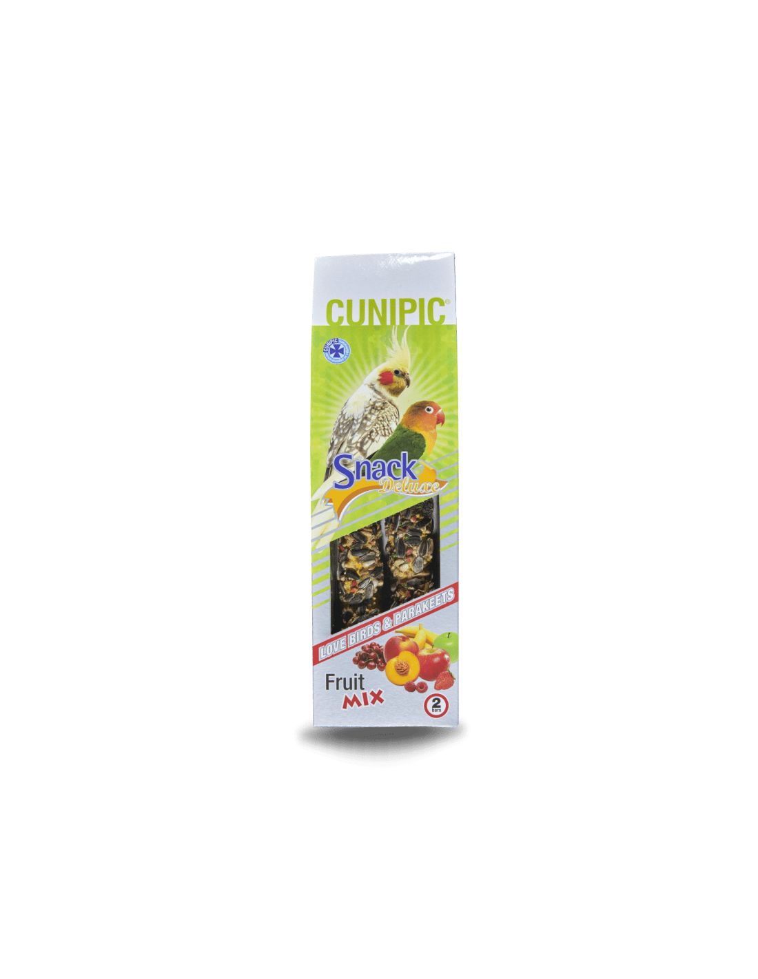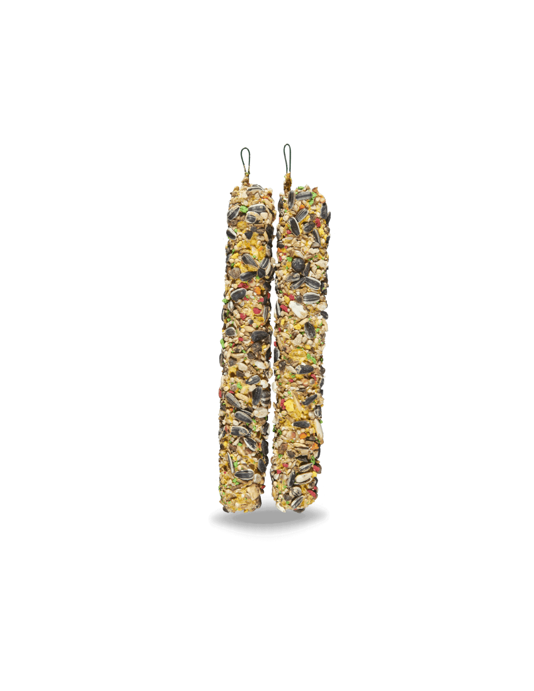 Las Barritas Snack Deluxe 130g Agapornis y Ninfas, son complementos que vienen en formato de 2 barras compuestas por semillas y frutas horneadas, bañadas en una doble capa de dulce miel. Este producto es una exquisita golosina que vuelve loco a cualquier pájaro, al mismo tiempo que le aporta vitaminas, fibra y antioxidantes que son vitales para su salud. También fomenta la búsqueda de semillas, por lo que tu pequeña ave se mantendrá entretenida durante un buen rato.