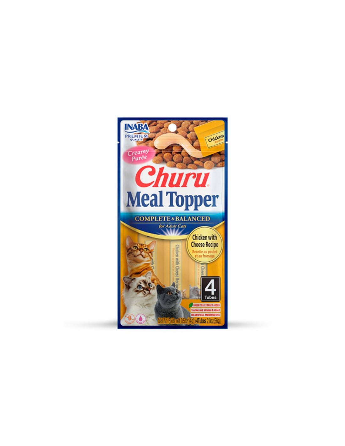 Churu Meal Topper és perfecte per a afegir damunt del menjar habitual com a complement. També es pot usar com a ració diària completa: 13 tubs per cada 3 kg de pes corporal repartits en 2 o 3 menjars diaris. Les quantitats de menjar poden variar en funció de l'edat i el nivell d'activitat.