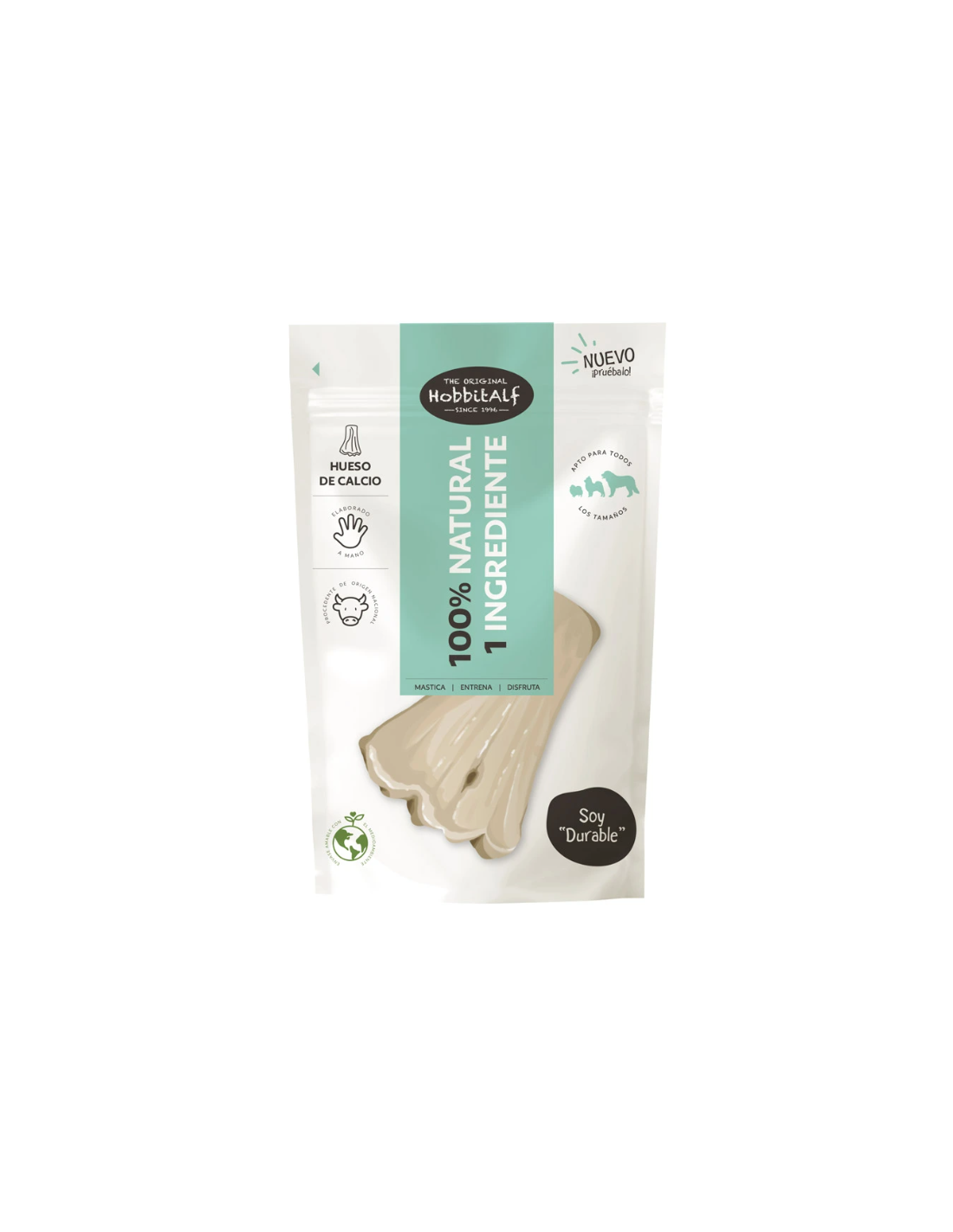 Aquest os pertany a la gamma 100% Natural – 1 Ingredient de Hobbit Alf, una selecció de snacks monoproteics elaborats únicament amb un ingredient d’origen animal i sense cap tipus d’additiu, conservant o afegit artificial. El seu procés d’assecat lent a l’aire conserva els nutrients essencials i garanteix una excel·lent digestibilitat.