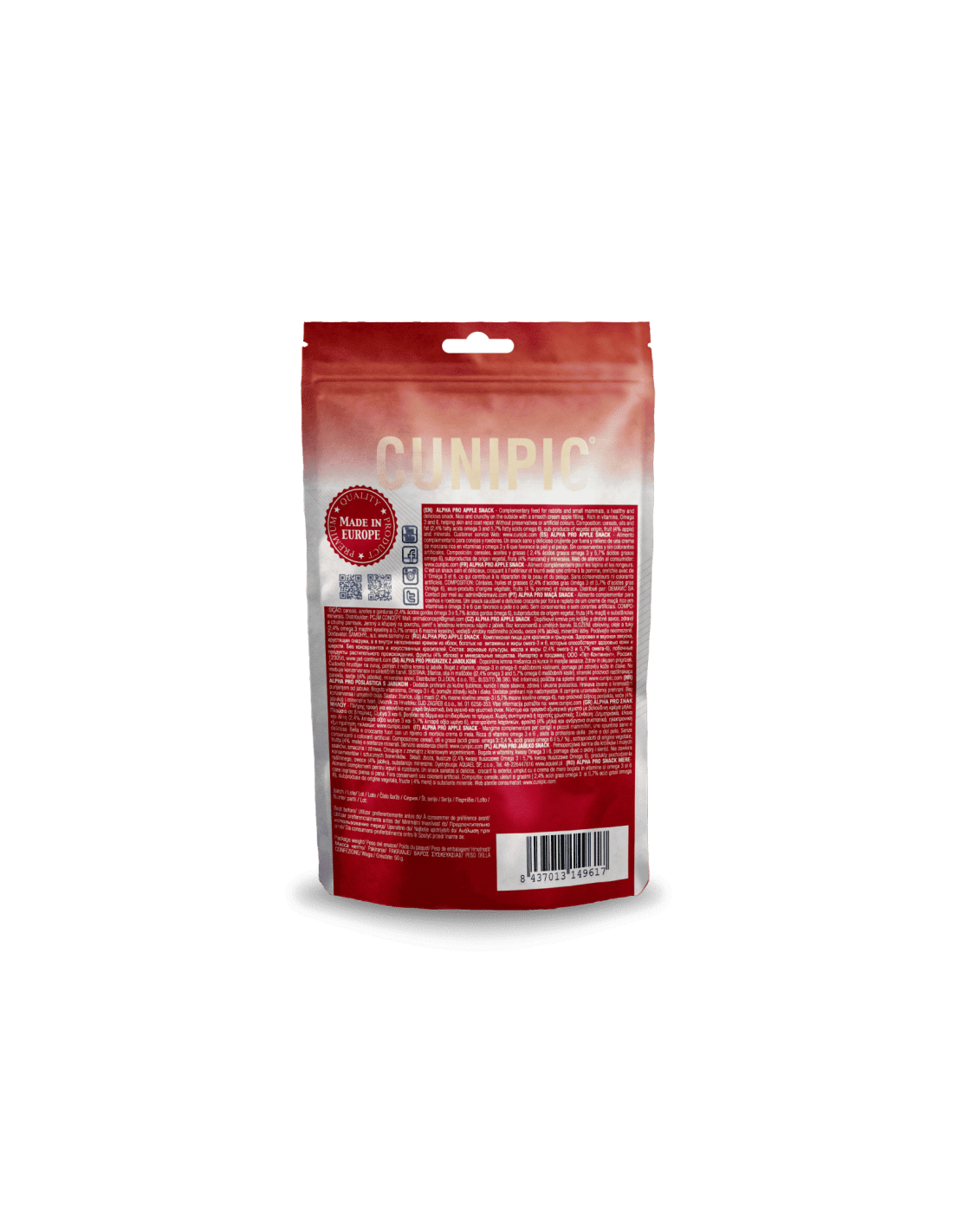 Alpha Pro Snack de Poma de Cunipic és un premi deliciós i saludable per a conills i rosegadors. La seva textura cruixent per fora i el seu suau farciment de crema de poma el converteixen en una recompensa irresistible, perfecta per mimar el teu petit company sempre que vulguis.