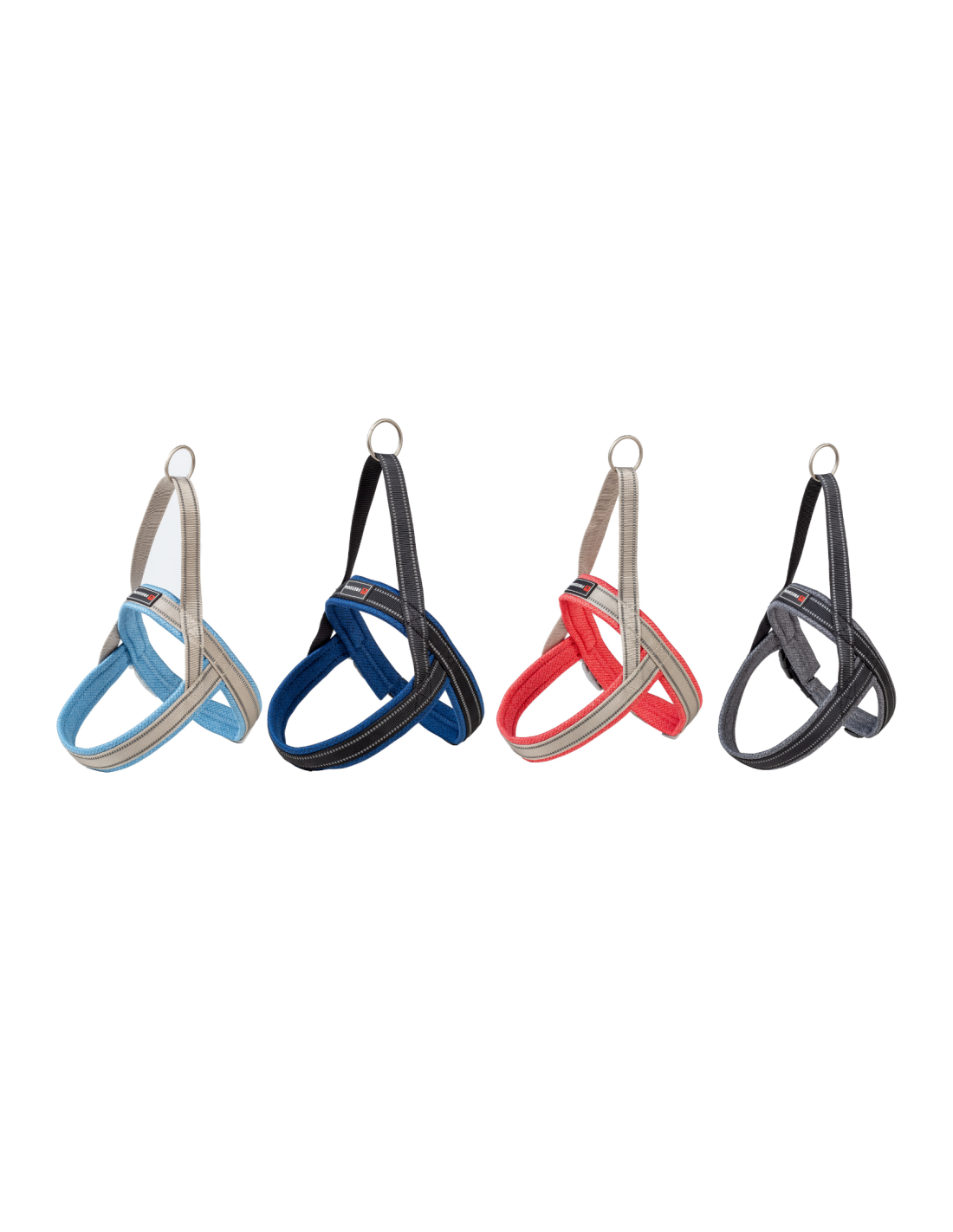Arnès ajustables i encoixinaments amb goma escumeja per a la màxima comoditat de la nostra mascota amb sivelles de zinc i amb tancament de quatre ancoratges. És un model elegant i còmode.