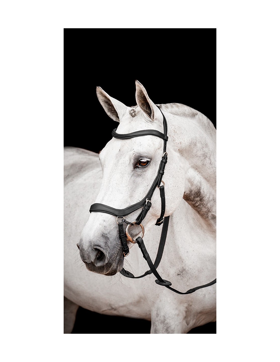 El seu disseny intel·ligent considera la comoditat de la boca interna i dissipa els problemes d'entumiment en la part inferior de la cara associats amb la pressió nerviosa innecessària. La muserola minimitza encara més les molèsties o les restriccions respiratòries que poden estar associades amb les museroles caigudes d'ajust baix. El disseny intel·ligent de la becaina elimina qualsevol possible molèstia i dolor sota la llengua causat per una pressió innecessària, la qual cosa li permet una comunicació refinada amb el seu cavall sense dolor.