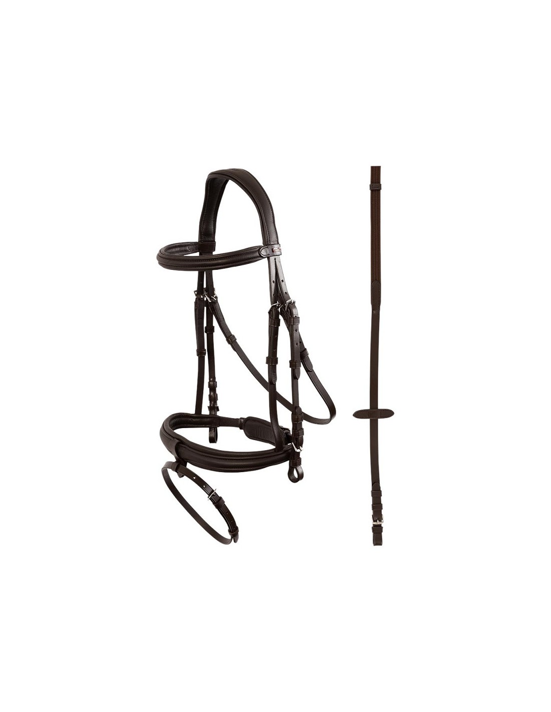 La testera i la muserola combinada tenen forma anatòmica per a alleujar els nervis sensibles del cap del cavall. La muserola també està equipada amb un coixinet de barbeta ampla i suau per a major comoditat.