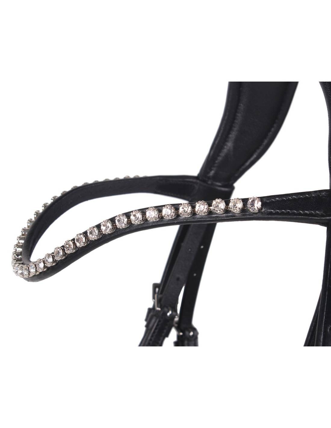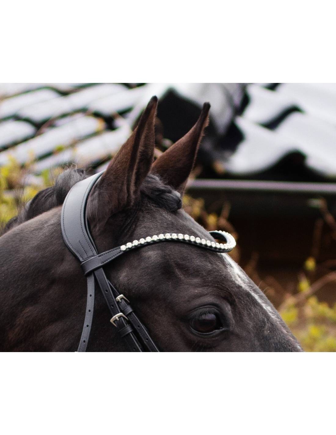 Brida de cuir amb costures rodones i testera de manera anatòmica.