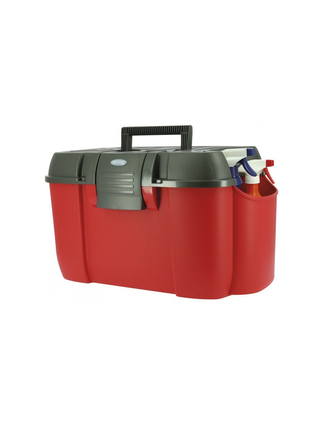 Caixa àmplia per guardar la majoria dels articles de neteja. Butxaca lateral "koala" per sostenir fins l'ampolla més alta en posició vertical. Gran tancament amb clip de plàstic que manté la caixa ben tancada durant el transport. Es pot tancar amb cadenat per assegurar les seves pertinences. Tauleta horitzontal i poc profunda desmuntable per als objectes petits que són difícils de trobar. La tapa reforçada pot suportar fins a 120 kg.