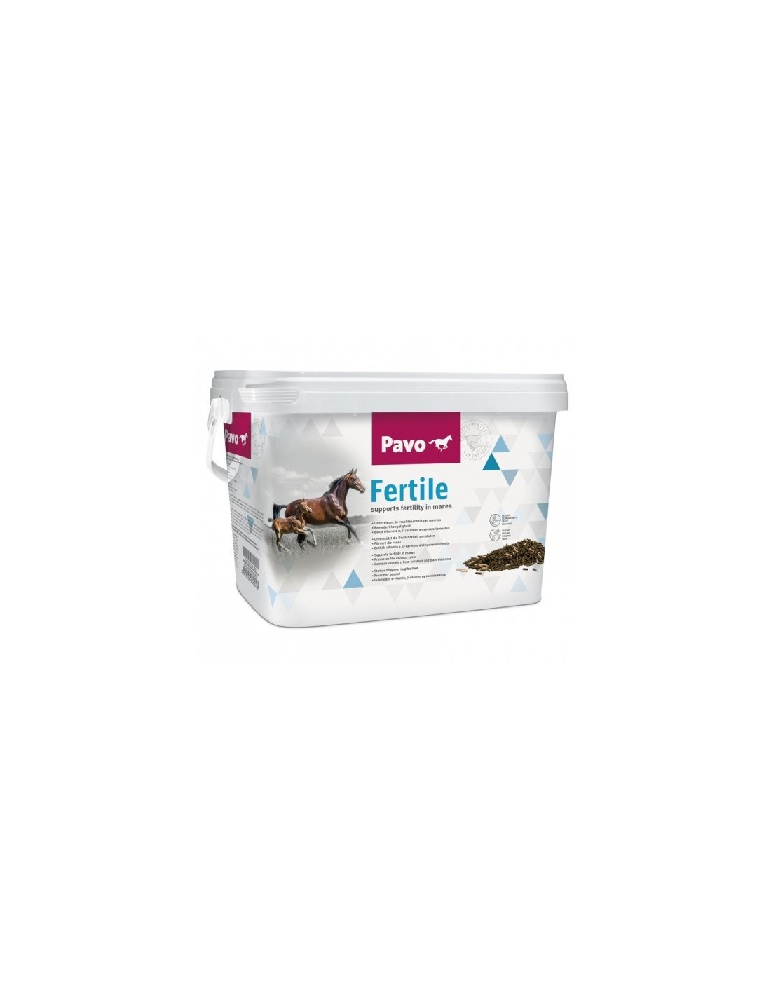 Pavo Fertile està formulat per a l'inici del cicle i conté totes les substàncies necessàries per a la preparació d'un desenvolupament sa dels òvuls. Especialment indicat per a egües que no es mostren al semental amb prou claredat.