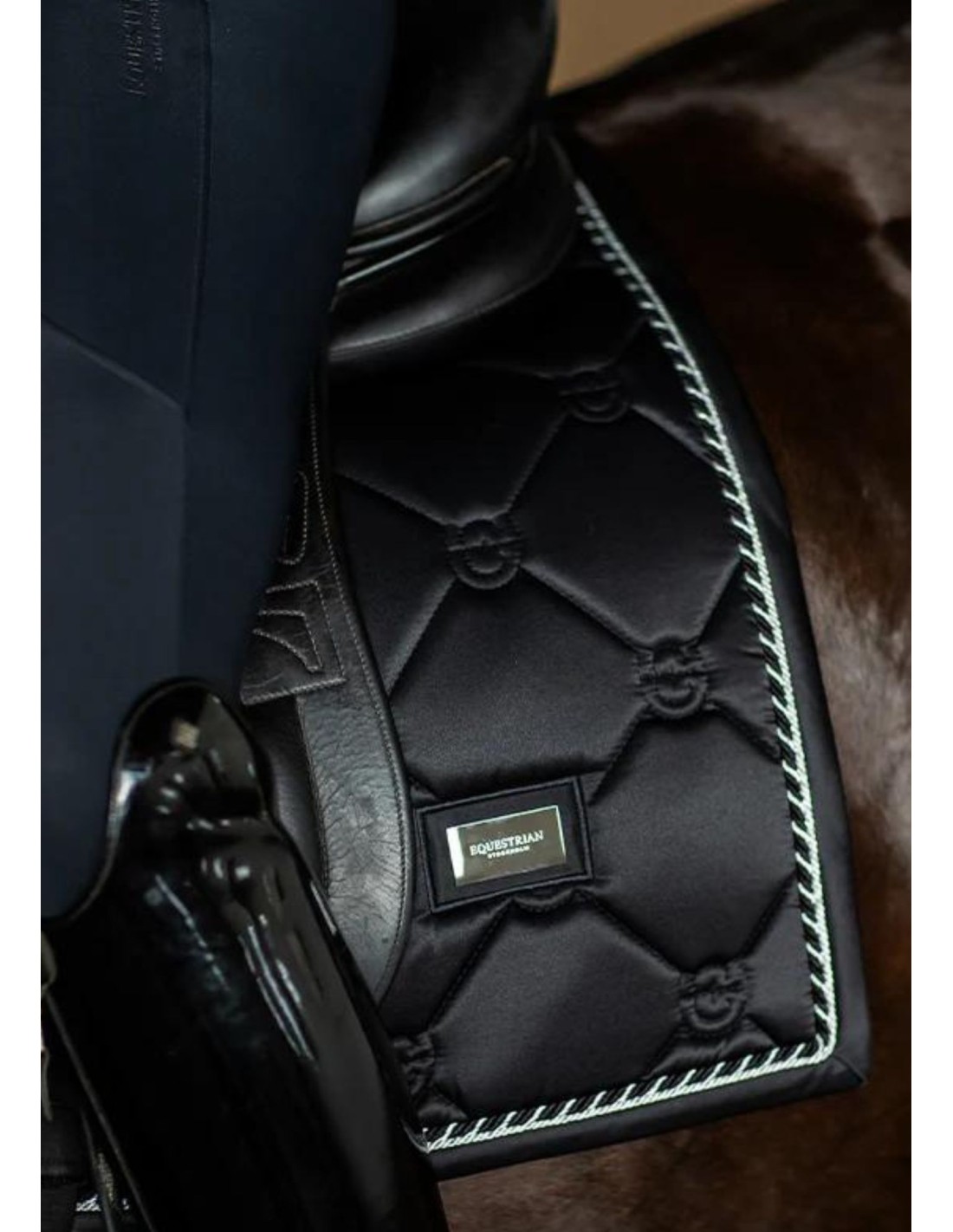 Està confeccionada en un material brillant i resistent a la brutícia que respira bé i manté al teu cavall sec durant les sessions més suoses. Està embuatada amb el patró de Equestrian Stockholm.