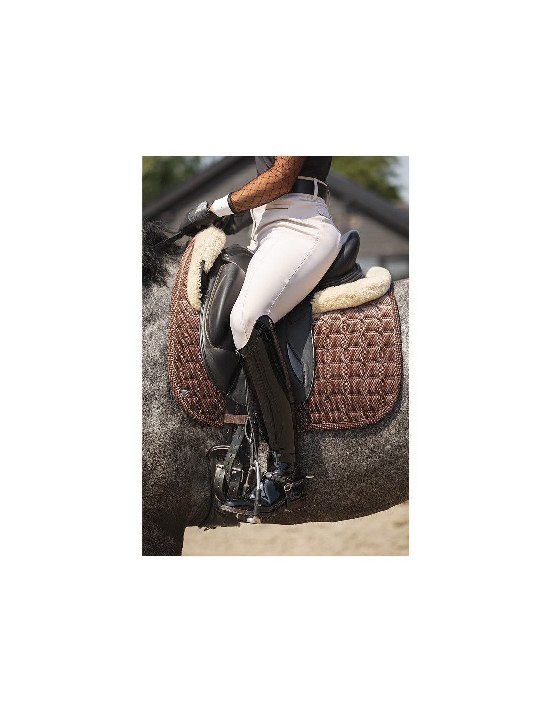 Suador de vellut amb relleu en forma de diamant amb la seva forma anatòmica proporciona al seu cavall una comoditat òptima. El folre s'asseca extremadament ràpidament i regula la humitat, mantenint el dors del cavall sec en tot moment. Els dobles passadors garanteixen una posició ferma de la cingla.