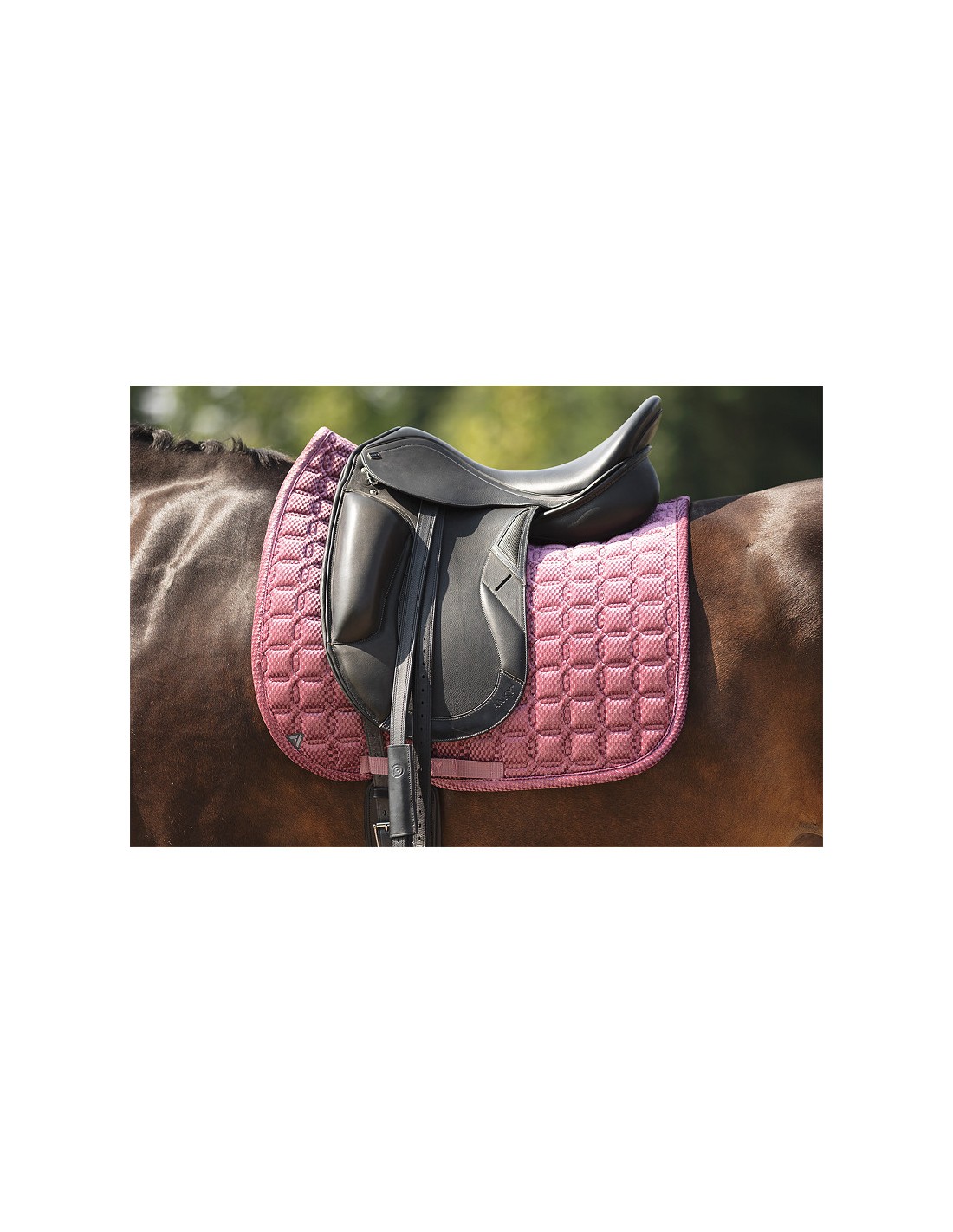 Suador de vellut amb relleu en forma de diamant amb la seva forma anatòmica proporciona al seu cavall una comoditat òptima. El folre s'asseca extremadament ràpidament i regula la humitat, mantenint el dors del cavall sec en tot moment. Els dobles passadors garanteixen una posició ferma de la cingla.