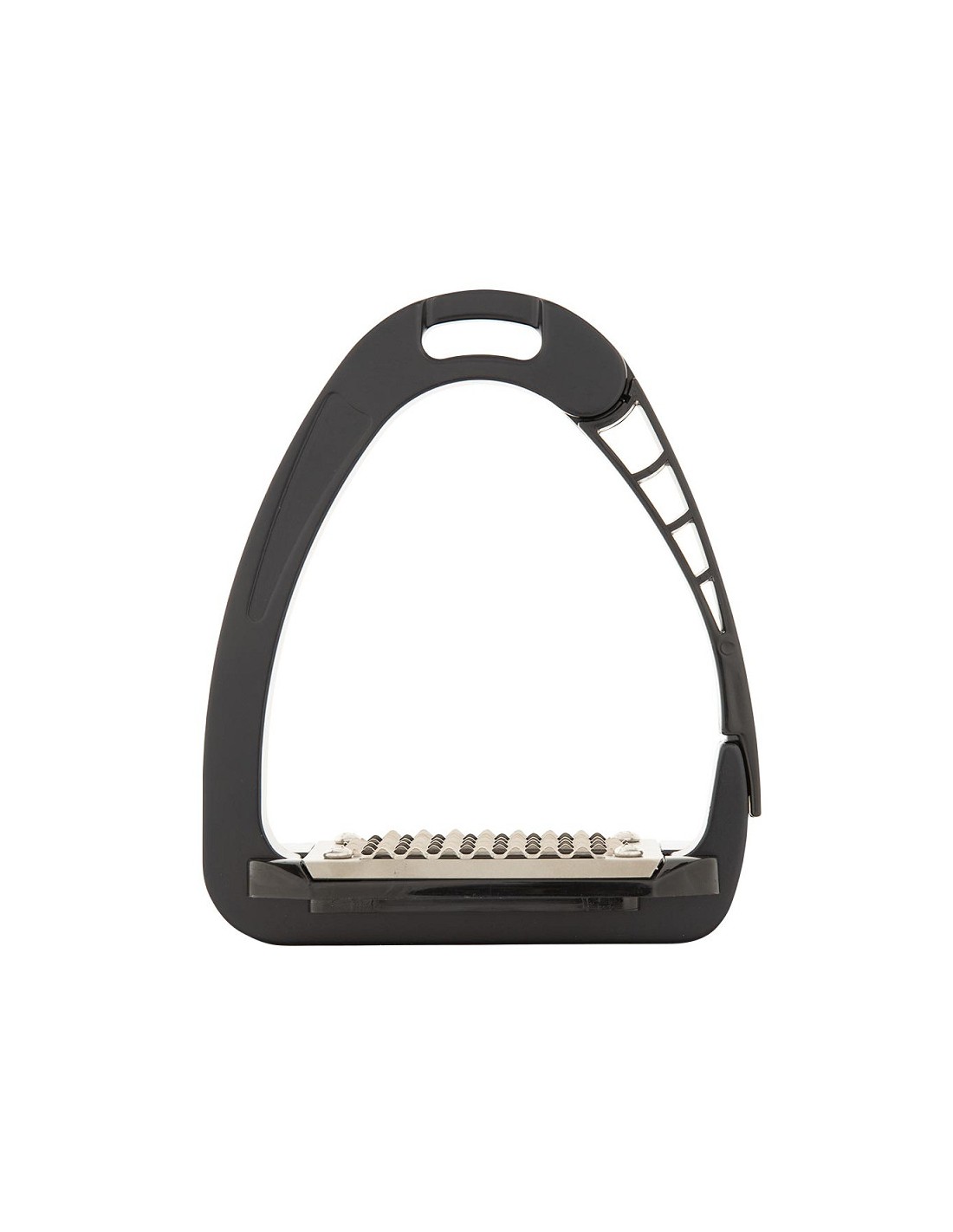 Els estreps Acavallo Alupro es caracteritzen pels nous estreps patentats d'obertura lateral, fruit de diversos anys de recerca i desenvolupament. Combinació d'alta tecnologia de materials metàl·lics i polimèrics, produïts mitjançant una innovadora tècnica d'emmotllament per injecció patentada. Gràcies al seu disseny i construcció a base de polímers flexibles, l'estrep transmet una sensació menys rígida i molt més còmoda al genet que amb els productes convencionals. La part superior de l'estrep és d'acer inoxidable i es caracteritza per uns llargs orificis horitzontals que eviten l'acumulació de sorra i brutícia, per a garantir un agarri òptim en totes les condicions; l'acer inoxidable també el protegeix de la corrosió i, per tant, garanteix una llarga vida útil del producte. L'obertura del mecanisme de bloqueig i desbloqueig accionat per tensió es troba un centímetre més amunt de la banda de rodadura per a garantir que el peu no se surti lateralment per error i per a evitar que la sorra i la brutícia retardin l'acció d'obertura del braç en cas d'emergència.