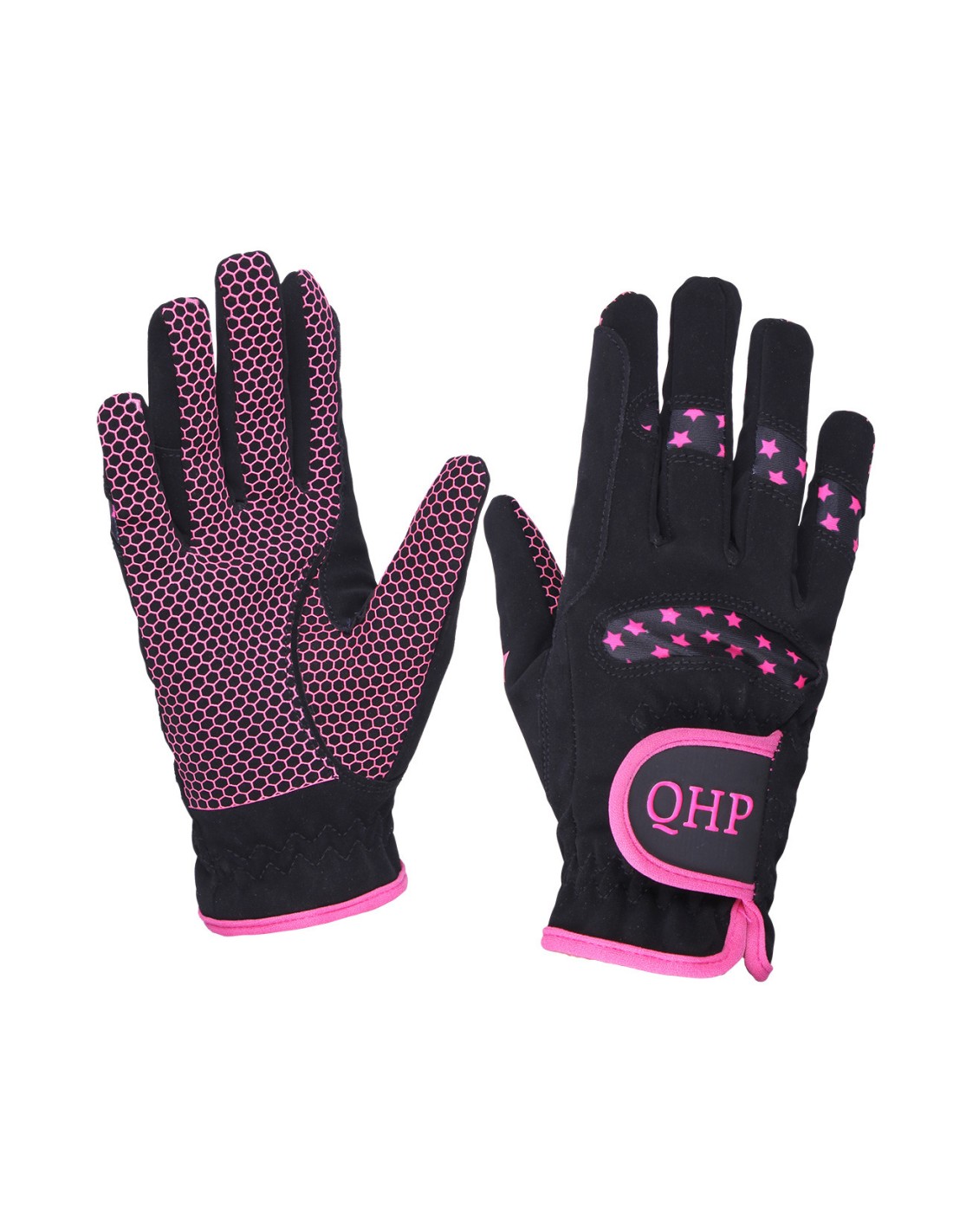Guants QHP Multi Star Negre/Fucsia Júnior |Cavall i Genet a Equestrian