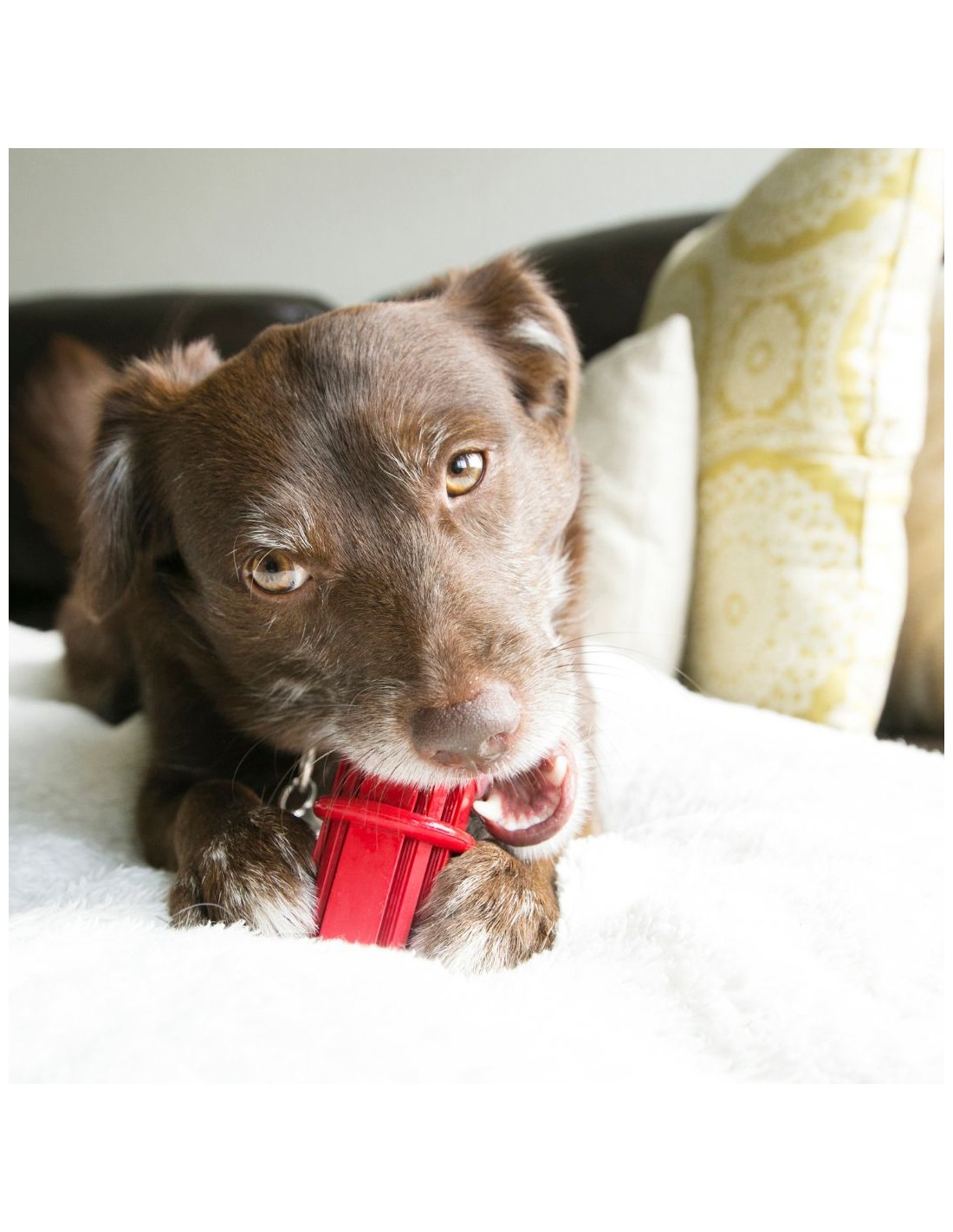 El KONG Dental Estic™ té un disseny divertit i és ideal tant per a jocs de buscar i recollir com per a mastegar. Fabricat amb cautxú KONG Classic, aquesta joguina ajuda a satisfer l'instint natural de masticació. Les crestes contribueixen amb la neteja de les dents i les genives i poden emplenar-se per a aconseguir una experiència més enriquidora.