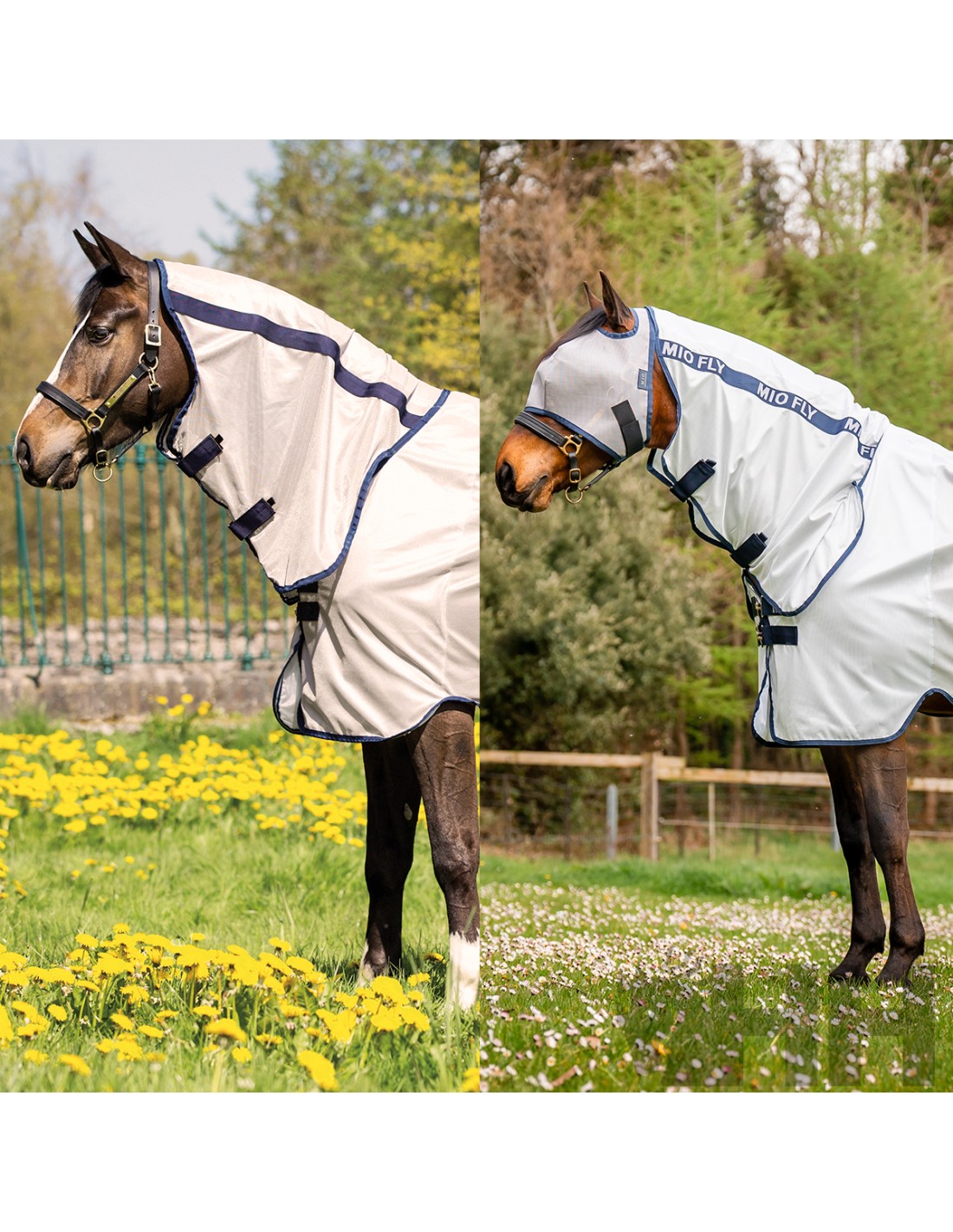 Manta realitzada en polièster ultra transpirable per a protegir el cavall de tota mena d'insectes. Incorpora caputxa per al coll i el sistema patentat de disseny en arc per a la posició de les mans del cavall i que aquest pugui moure's amb total llibertat.
