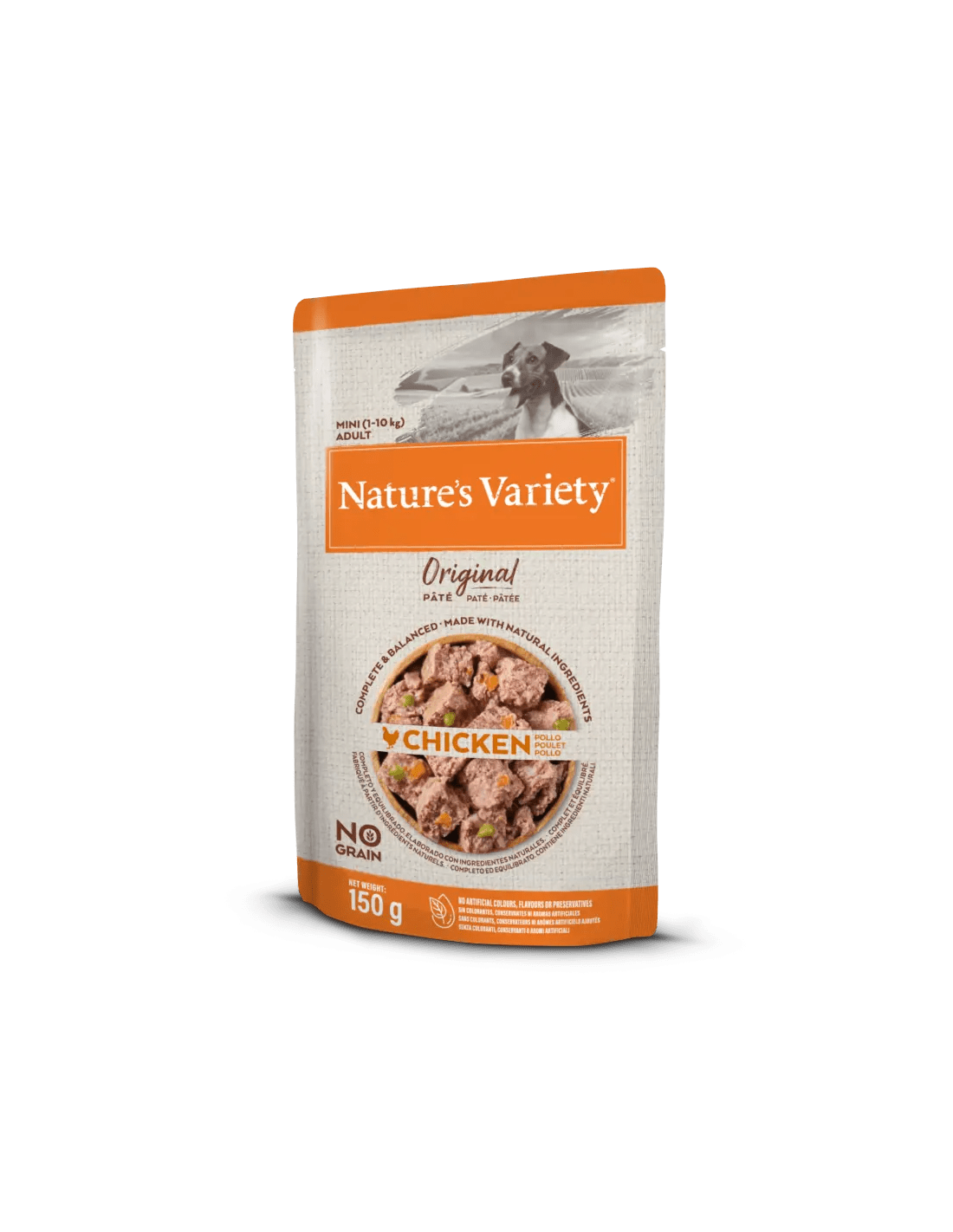 Amb pollastre d'alta qualitat com a ingredient principal, i amb fruites i verdures.