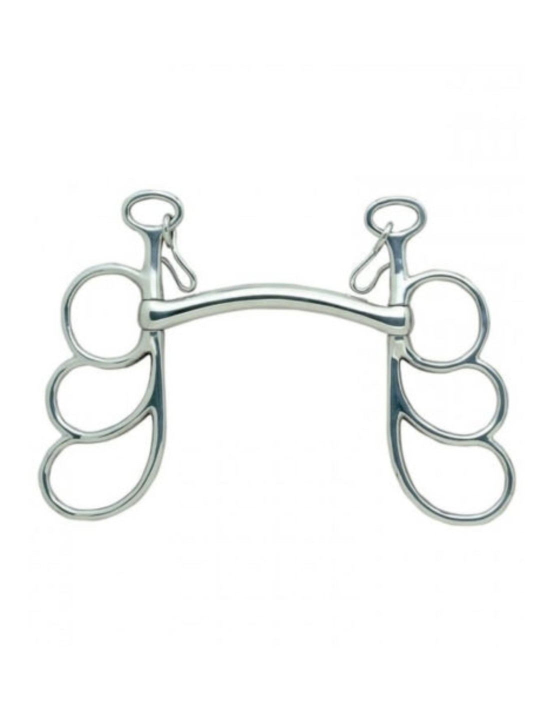 Cama: 10.5 cm.Portamos: 6 cm.Gruix embocadura: 15 mm.Amb cadeneta.Embocadura estriada.Inoxidable.