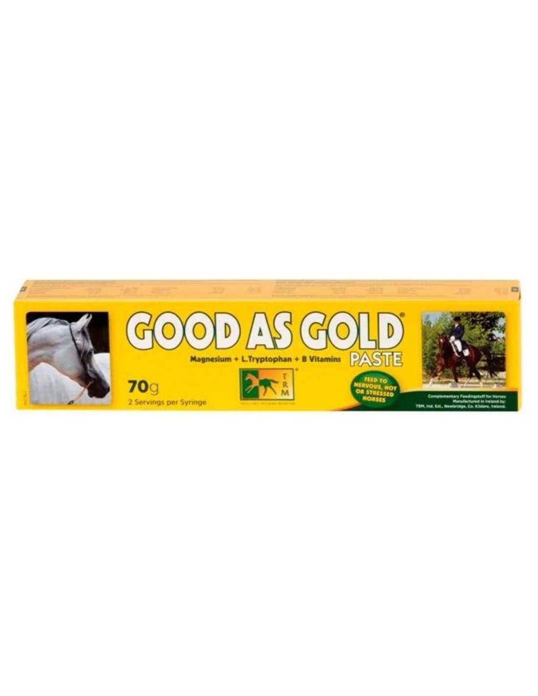 Good as Gold es un complemento alimenticio natural que combina el aminoácido esencial L-triptófano con los beneficios de las vitaminas E y B1. Es especialmente útil para caballos nerviosos o estresados.