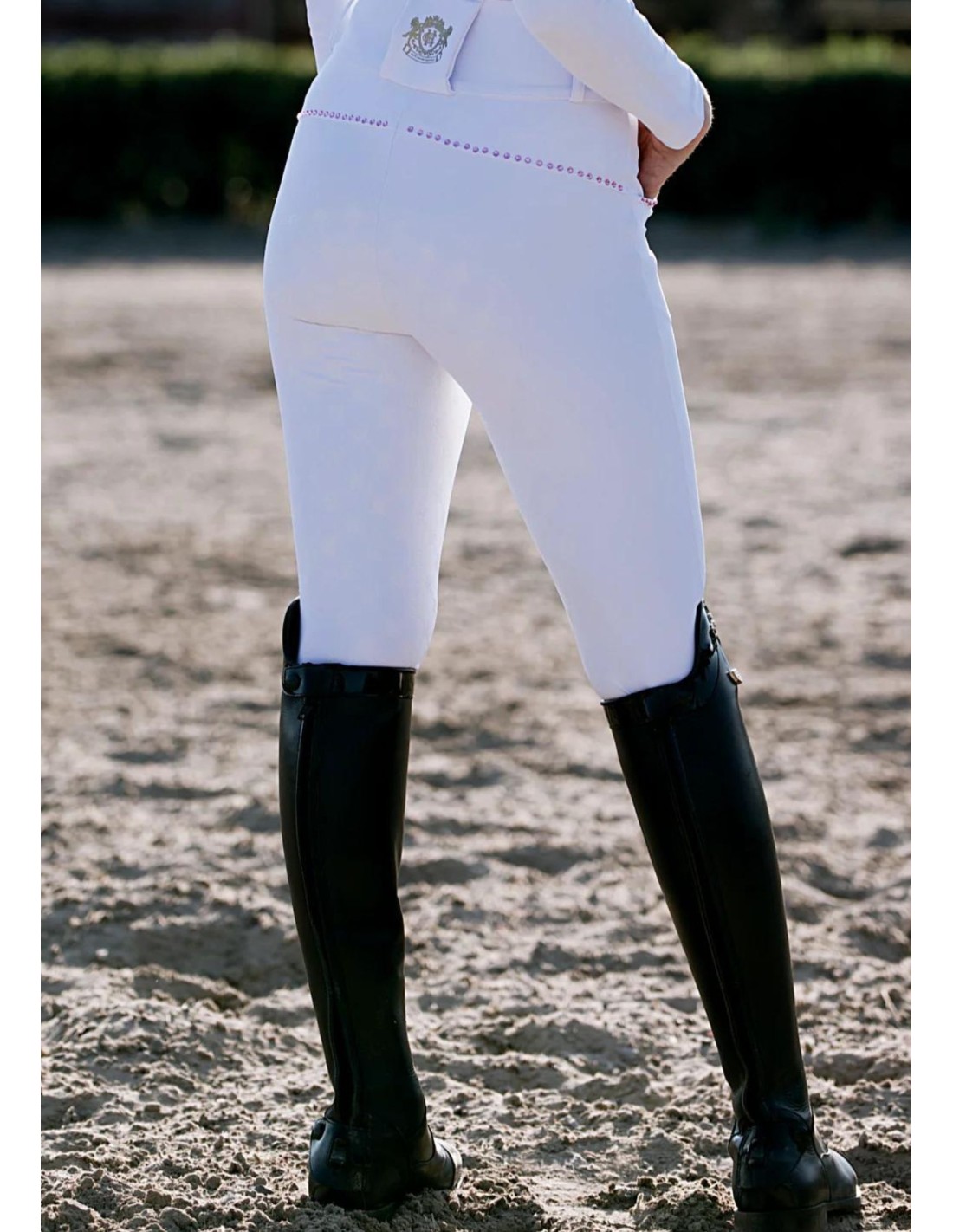 Cintura alta compressiva per a poder centrar-se en la munta i no haver de pensar a pujar la part posterior dels pantalons.