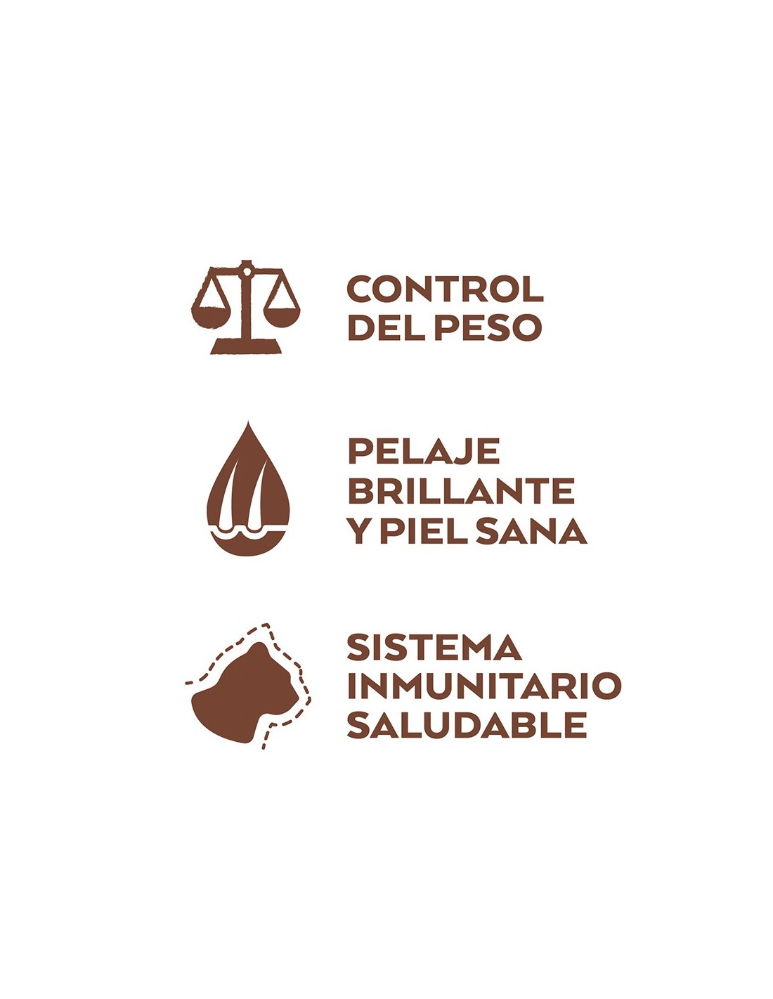 Menjar complet i equilibrat per a gats adults, sense cereals.