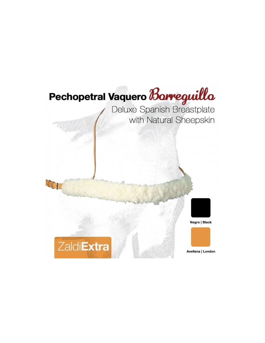 Pitpetral vaquer amb pit de borreguillo.Borreguillo natural.Amb corretja que passa pel coll del cavall.Talla única.