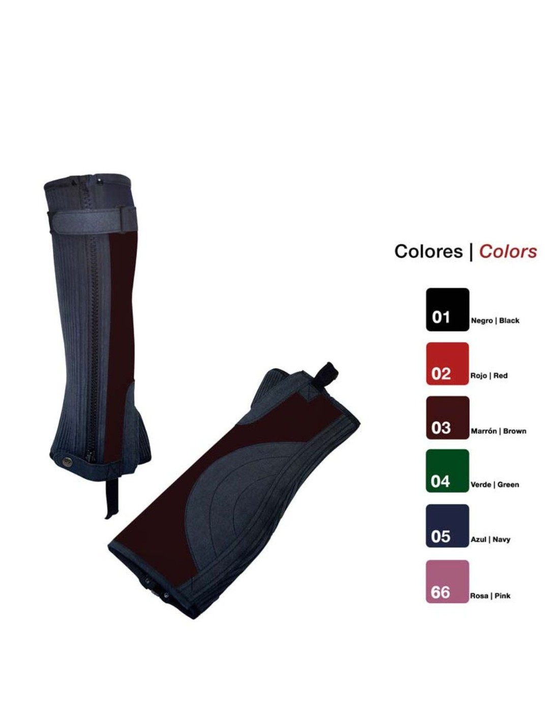 Colors: Negre, Rojo, Marró, Verd (només disponible des de la talla XS fins a la XL), Blava, Rosa (només disponible en talla XS i talla M).