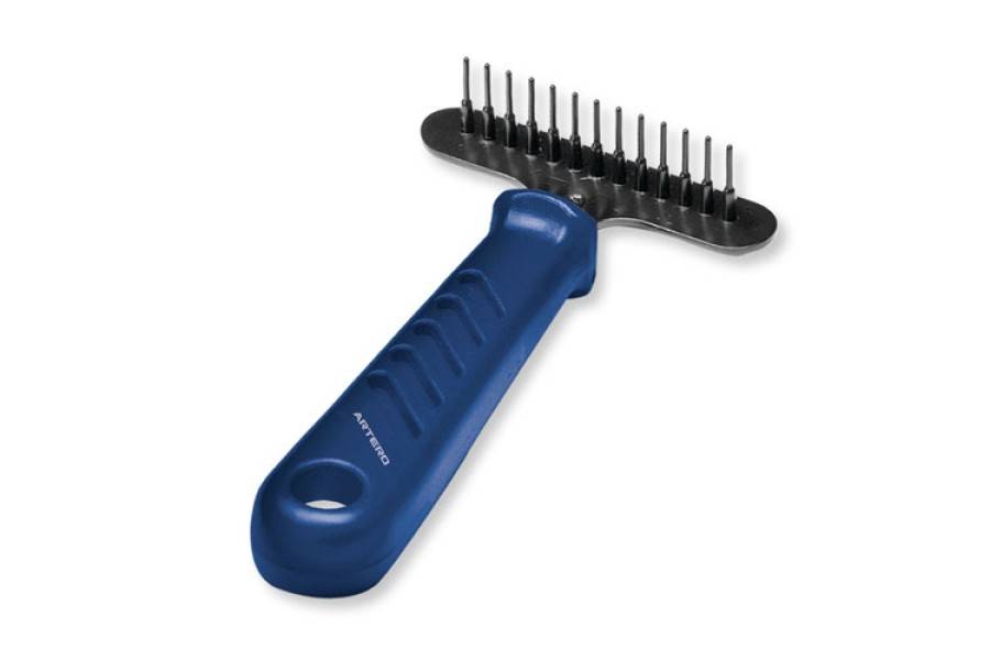 Rasclet per a gossos de pua curta extra fort. Mànec de plàstic perfecte per la seva forma ergonòmica per a arrossegar el pèl de muda i embolics amb menys esforç podent eliminar més quantitat de pèl en una sola passada.