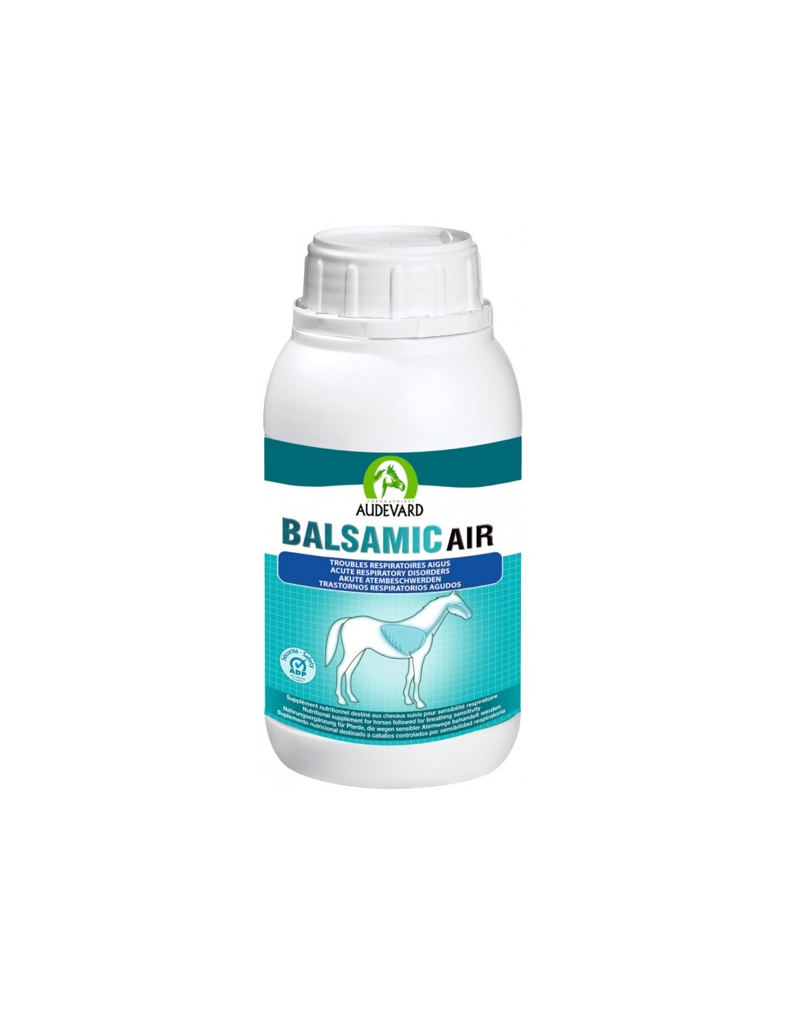 Balsamic Air és un complement alimentós per al confort de les vies respiratòries del seu cavall. Aquest xarop, a base de 4 olis essencials, inclòs el d'eucaliptus, és una fórmula natural per a donar suport al sistema respiratori (gola i tràquea) del seu cavall.