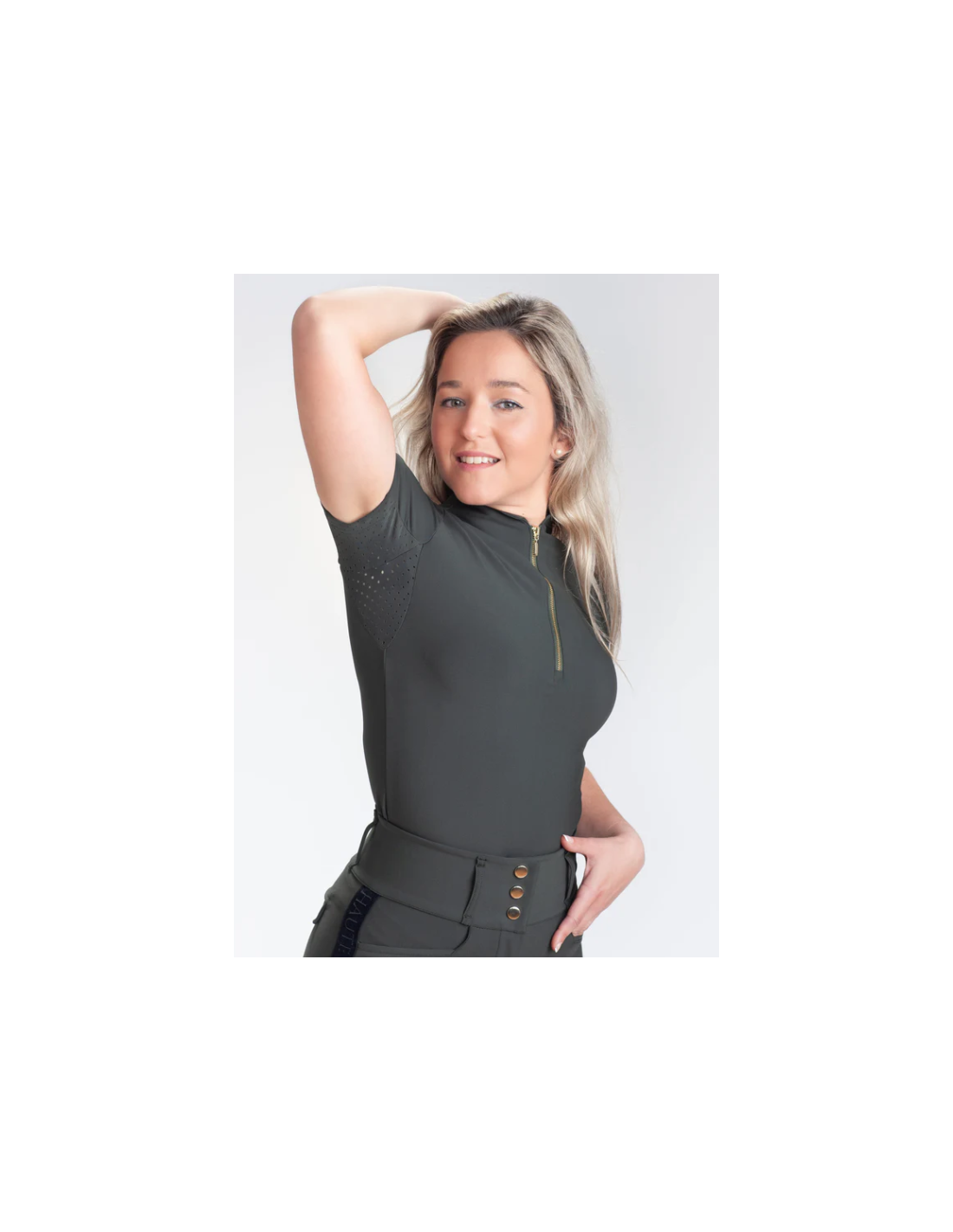 El teixit transpirable i còmode està dissenyat per a mantenir-te fresc i sec durant tota la jornada. Incorporem àrea microperforada per a major ventilació i sensació de frescor en els dies calorosos. La màniga curta és ideal per a una major mobilitat i llibertat de moviment mentre muntes a cavall.