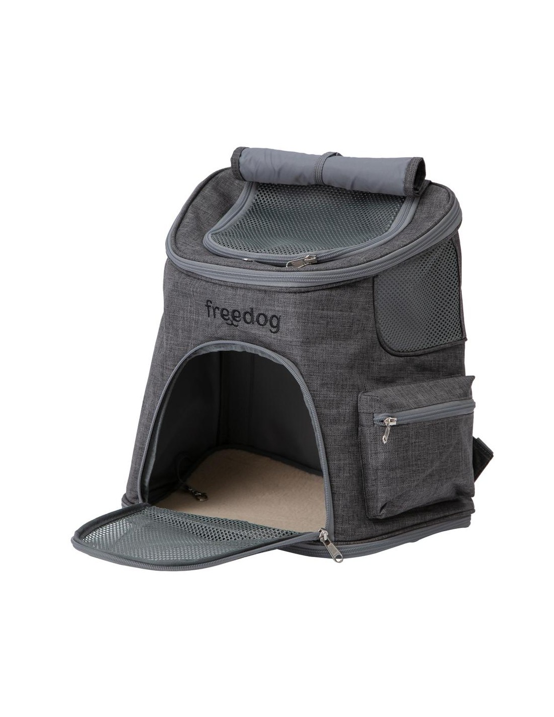 La motxilla compta amb una porta d'accés àmplia que facilita tant l'entrada com la sortida de la vostra mascota, assegurant un procés ràpid i segur. A més, disposa de corretges interiors per ancorar el collaret o arnès de l'animal.