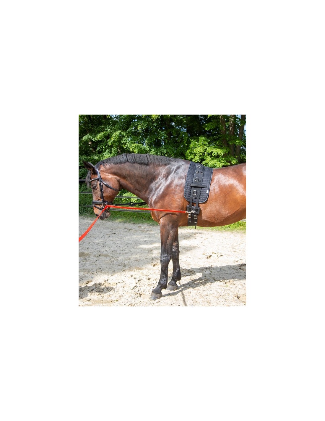 El Equibender es el producto innovador para la flexión lateral y los ejercicios de calentamiento durante el trabajo con el ramal. Concebido para reforzar simétricamente la musculatura. Los músculos se extienden y relajan, se estimula el movimiento del caballo que se hace más atlético y equilibrado. Un ligero impulso en el EquiBender, que se puede realizar con el ramal (recogiendo y soltando), estimula al caballo a recogerse y a flexionarse sin quedarse fijo en una postura rígida, sino conservando su movilidad y libertad de movimientos.