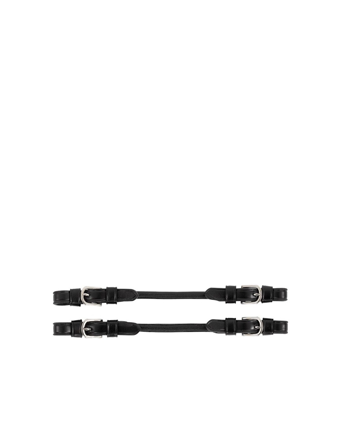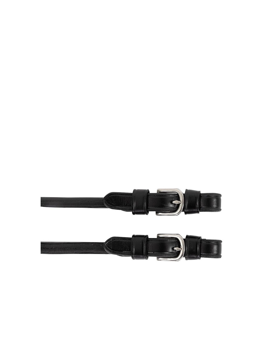 Las correas pelham con cuero fino enrollado están diseñadas para conectar los anillos de un bocado pelham, por lo que solo se necesita una rienda. Las correas miden 23 cm de largo y el cuero enrollado tiene un grosor de 6 mm. Las correas están hechas de cuero muy flexible. Tienen cierre de hebilla en ambos extremos.