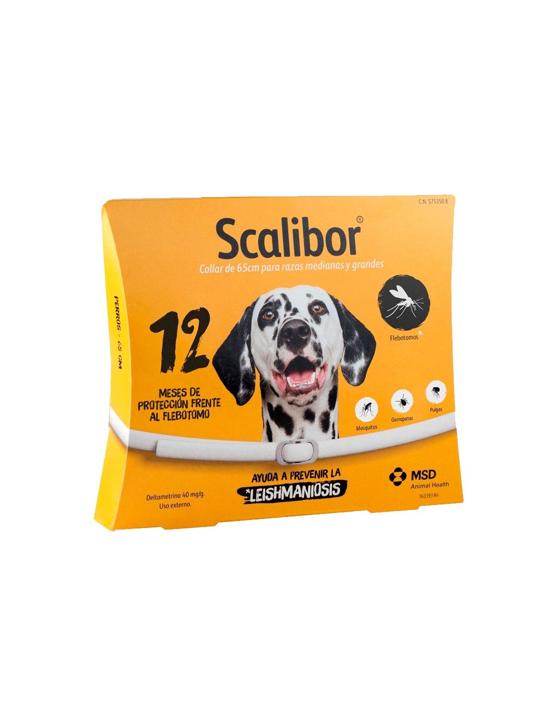 Efecto repelente (antialimentación) durante 12 meses por flebotomos (Phlebotomus perniciosus), efecto repelente durante 6 meses para mosquitos Culex pipiens. Prevención de infestaciones por pulgas (4 meses) y garrapatas (6 meses). NO en animales de menos de 7 semanas de edad.