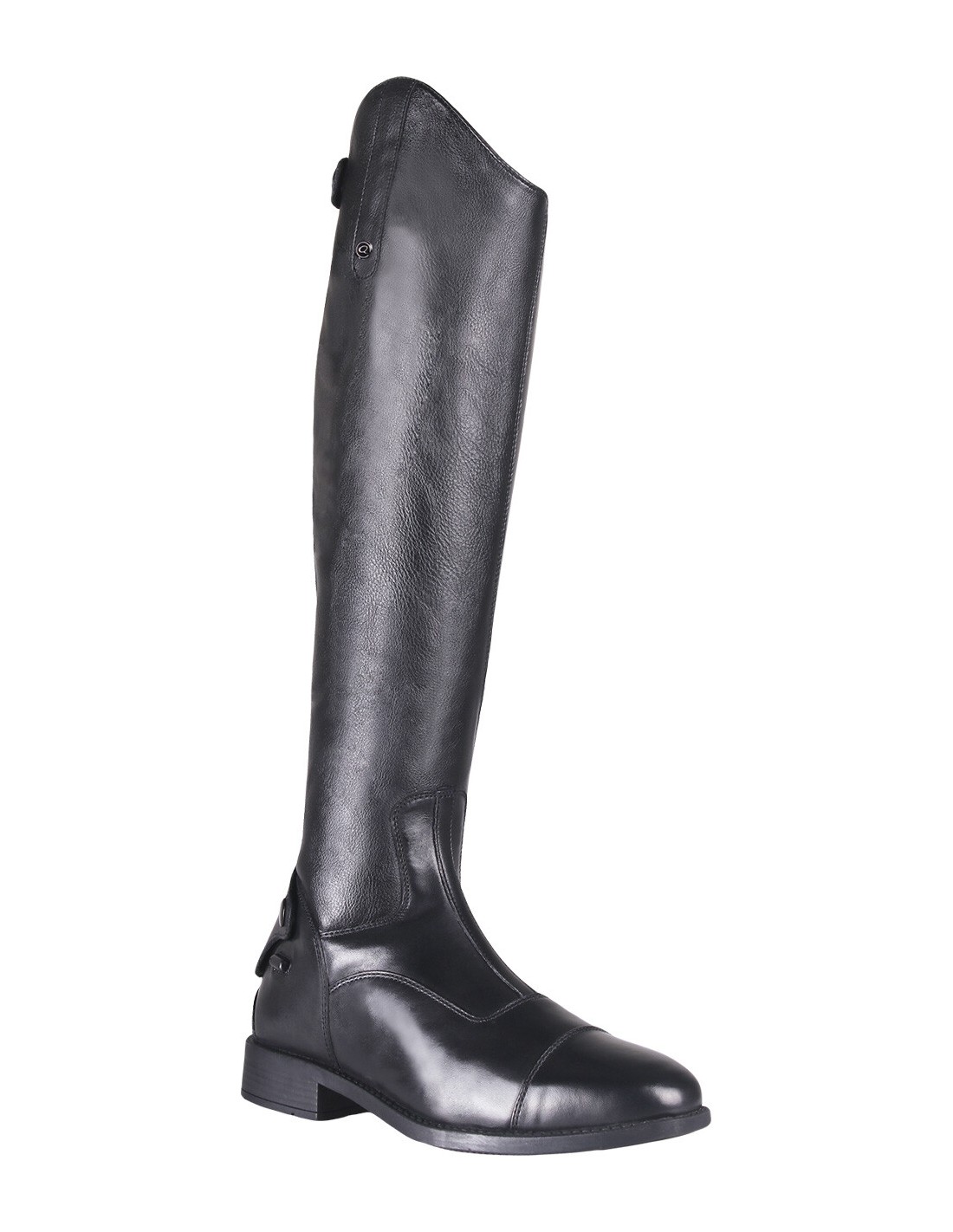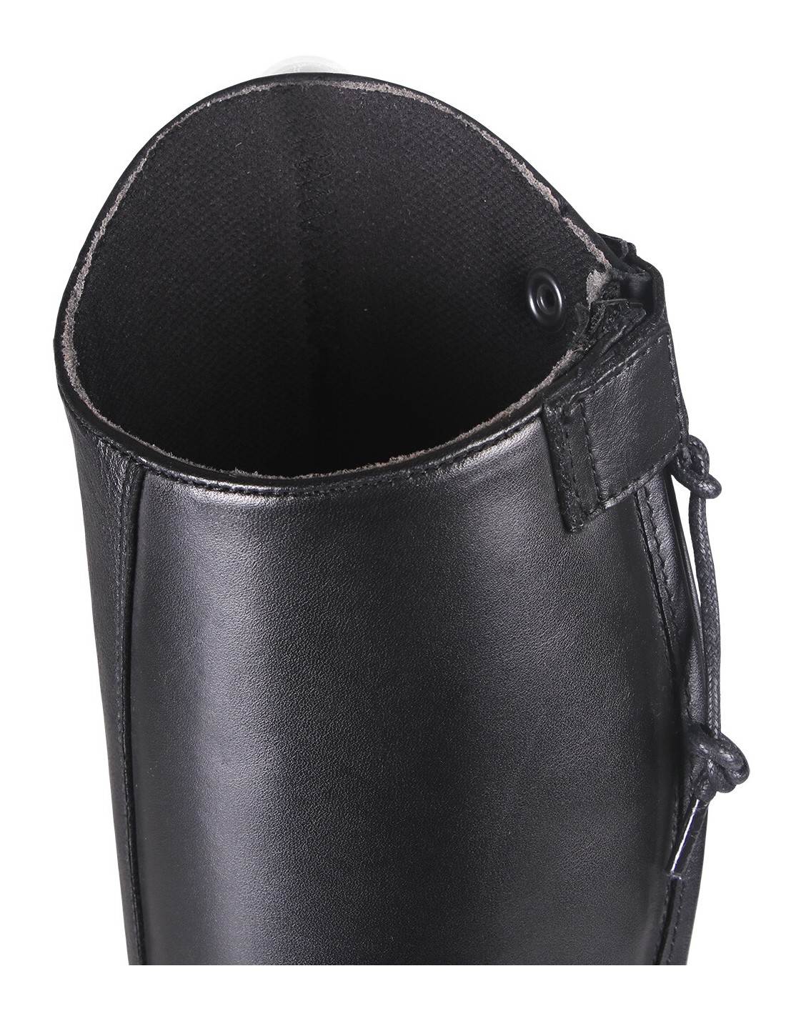 Esta bota de montar tiene un aspecto genial debido a la textura resistente del material en el eje y el cordón de la cremallera. El exterior de la pantorrilla es de piel sintética elástica, el interior de la pantorrilla y el pie son de piel.