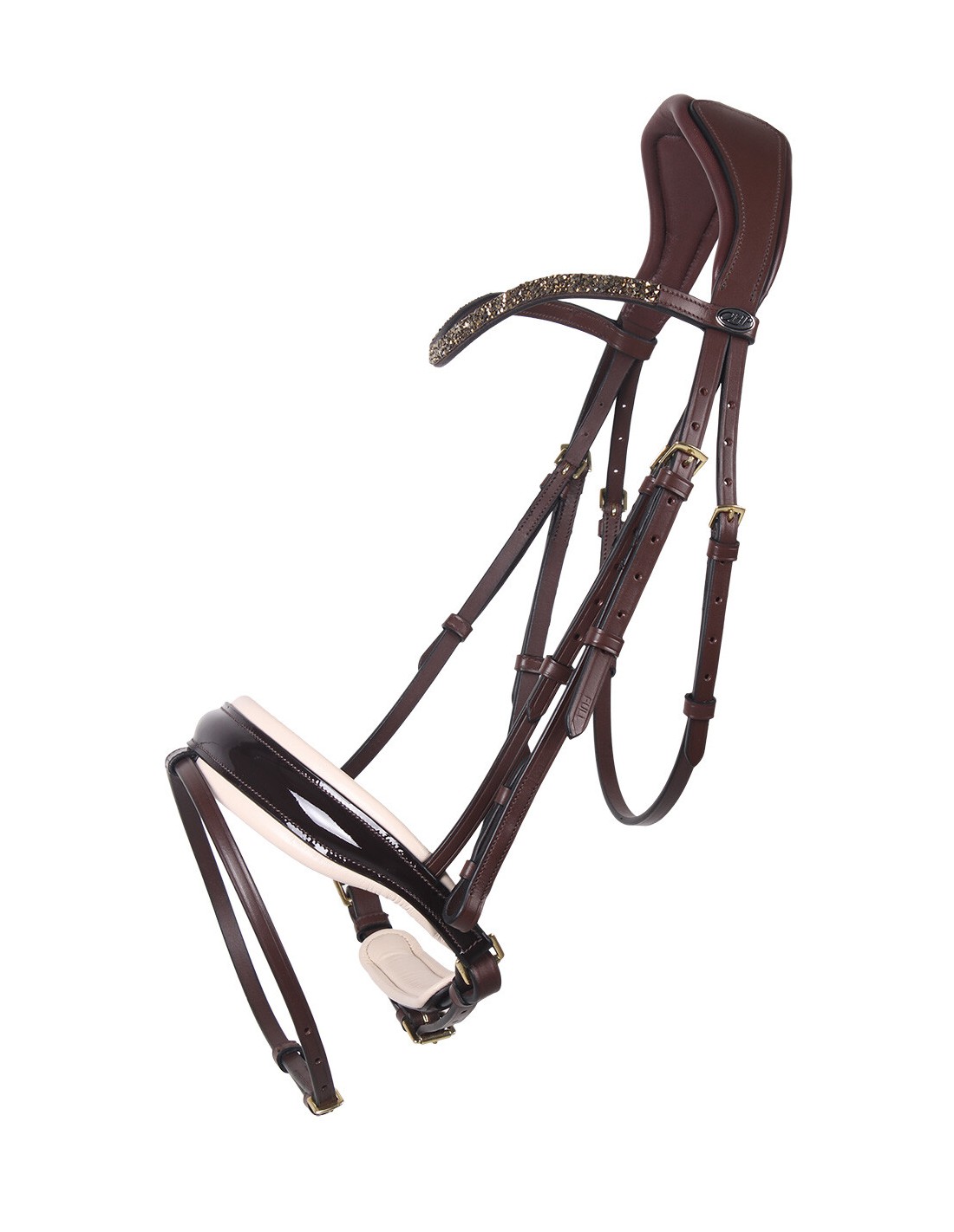 Muserola de charol con forma anatómica y acolchado extra ancha y suave.