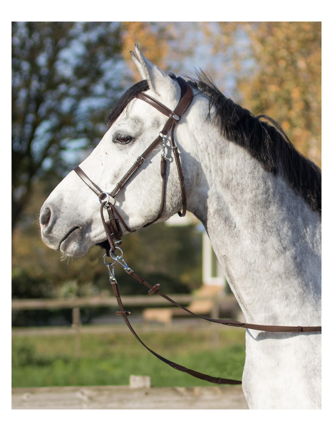 La hebilla de la muserola y de la testera están suavemente acolchadas.