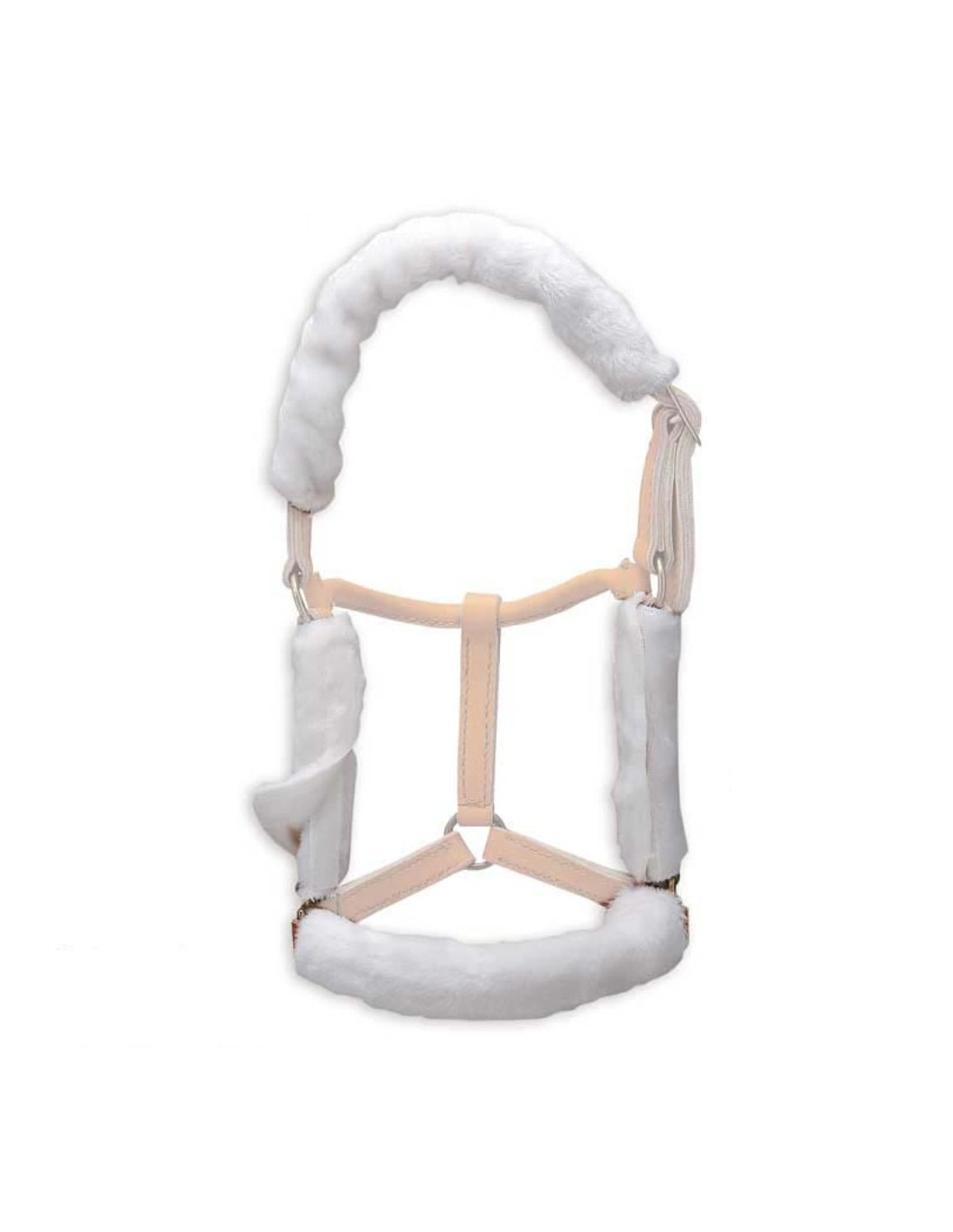 Funda para cabezada.Fabricada en borreguillo sintético.Medida de la testera: 38 cm.Medida de las carrilleras (2 piezas): 17 cm.Medida de la muserola: 32 cm.Cabezada no incluida.