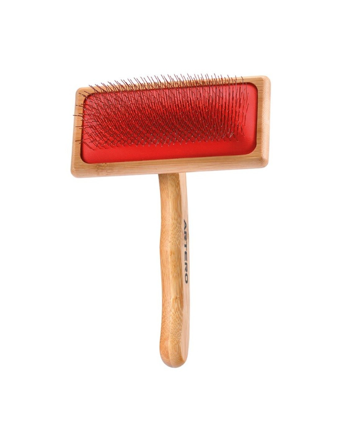 Carda ideal para cepillar mantos densos o con muda y efectivas para los enredos y nudos gracias a la flexibilidad de sus púas de 20 mm; longitud y grosor.