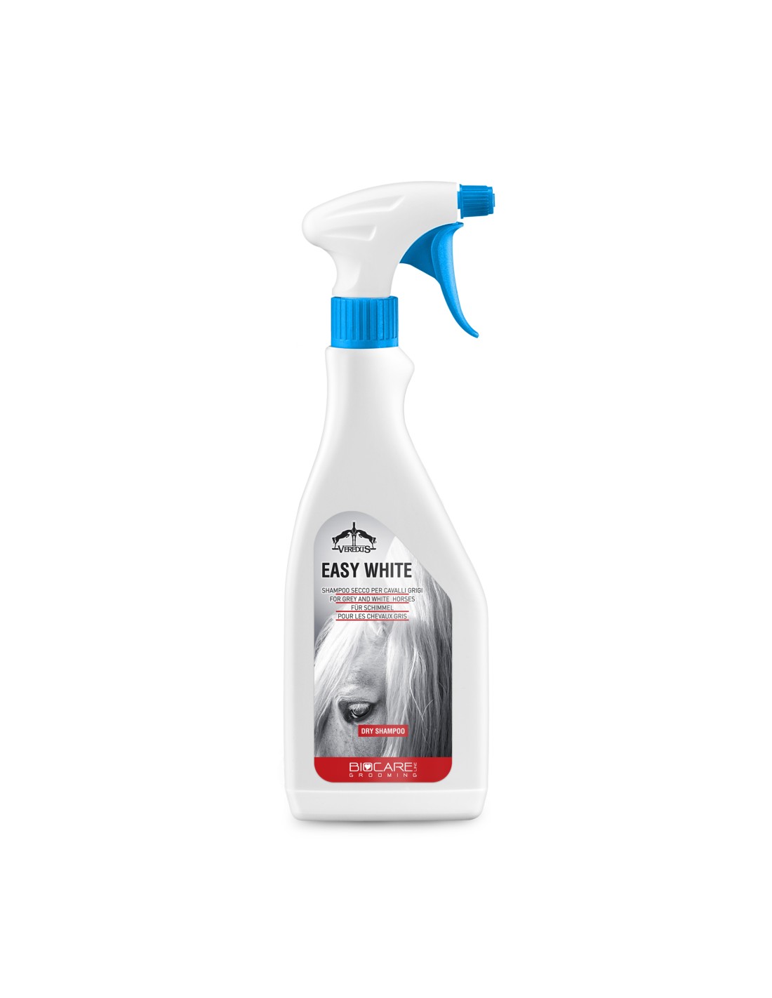 Spray con acción inmediata para eliminar manchas, ideal para eliminar al instante las manchas de suciedad en caballos tordos. Muy útil cuando no se dispone de tiempo o de la posibilidad de lavar completamente al caballo con champú. Actúa en menos de un minuto.