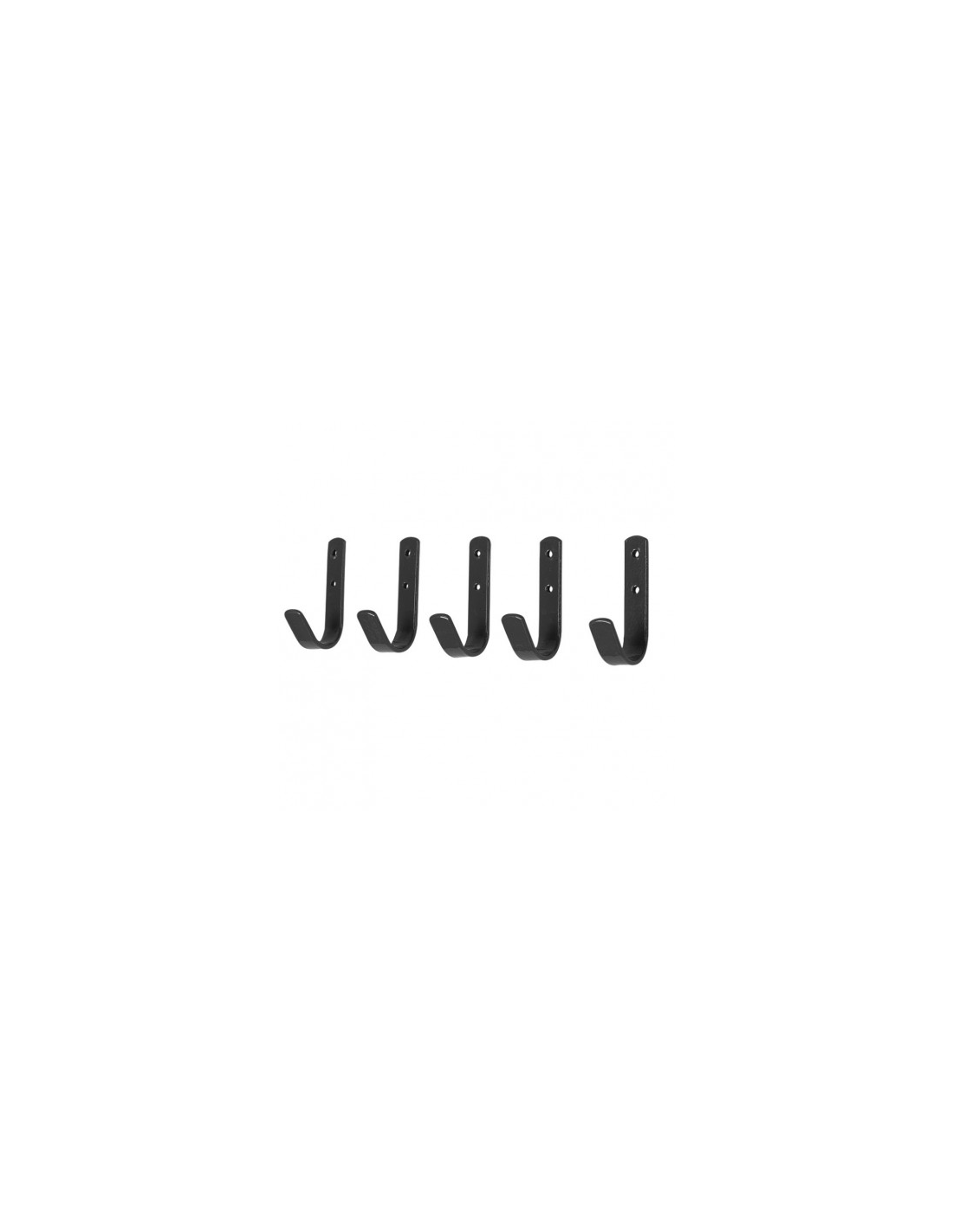 Este juego incluye 5 portabridas múltiples negro que se fijan a la pared mediante tornillos (no incluidos). Están fabricados en metal y son perfectos para mantener organizadas las áreas de trabajo con los caballos.