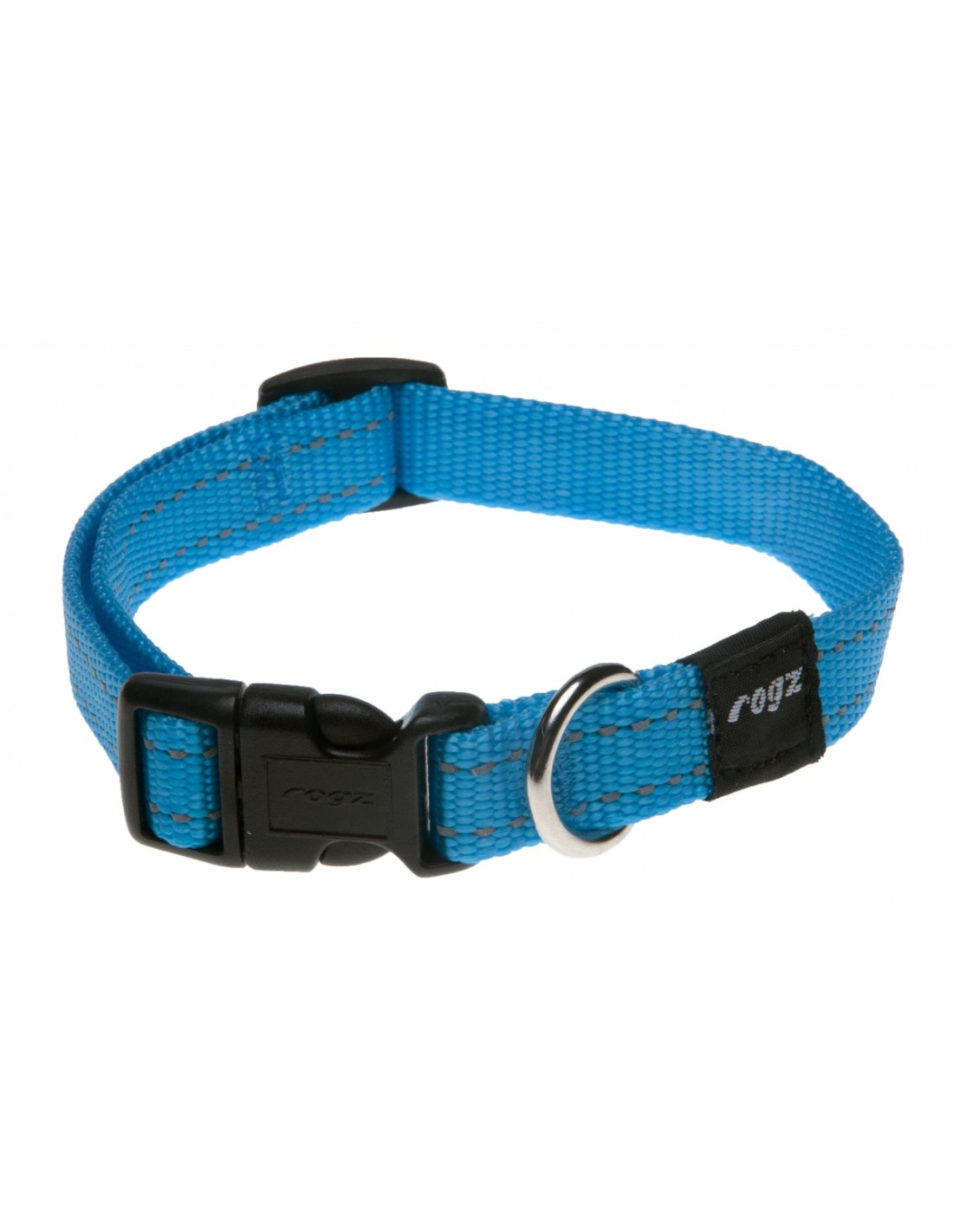 Rogz Collar Classices un collar de perro fabricado en nylon de alta calidad, con ribetes reflectantes para garantizar la seguridad nocturna. Además es anti rozaduras, ajustable y tiene la anilla inoxidable, curvada y sin soldadura para ofrecer la máxima seguridad y confort a su perro. Dispone también de una anilla para poder enganchar la placa de identificación. La hebilla RogLoc es segura y en las tallas grandes además se puede bloquear para evitar que se abra accidentalmente liberando al perro.