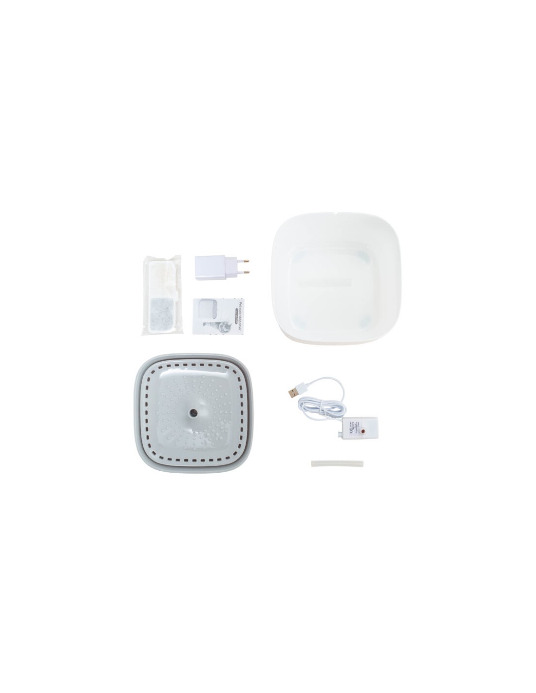 La fuente de agua FreeFlow para gatos y perros ofrece agua filtrada continua en un diseño elegante y silencioso, manteniendo a tus mascotas hidratadas y saludables de la forma más económica y sencilla. Con filtro, cargador y motor incorporado. Carga con USB. Se para automáticamente. Capacidad de 3 litros.
