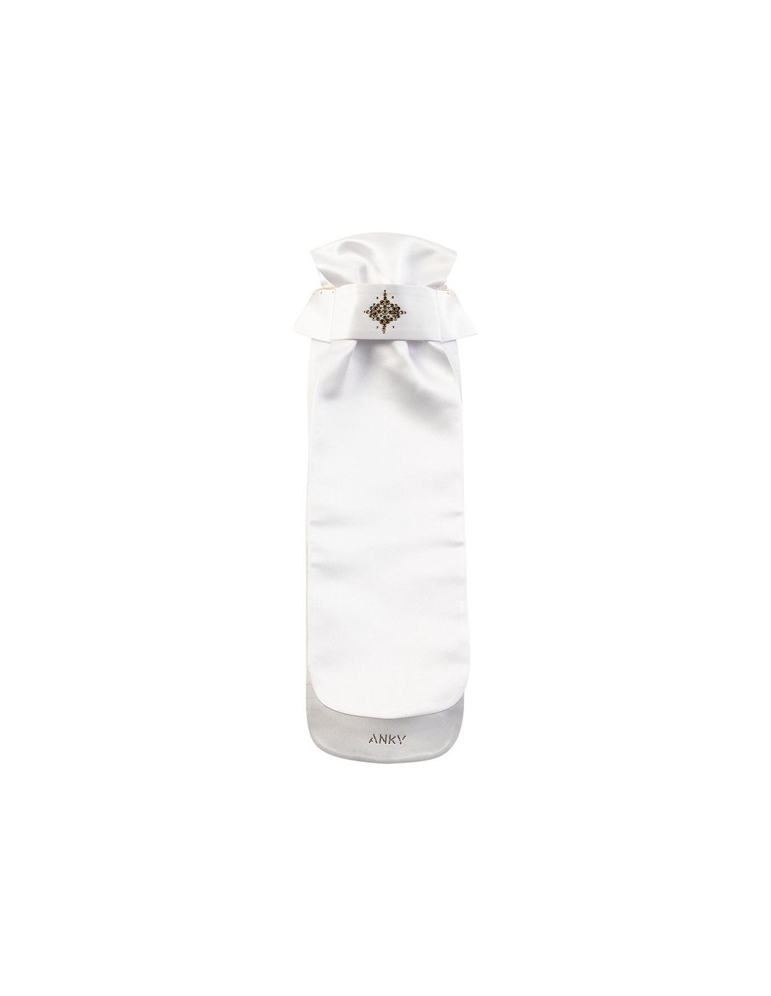 Modelo plisado con detalles brillantes. Estampadográfico con pedrería. Incluyebolsa de lavandería.