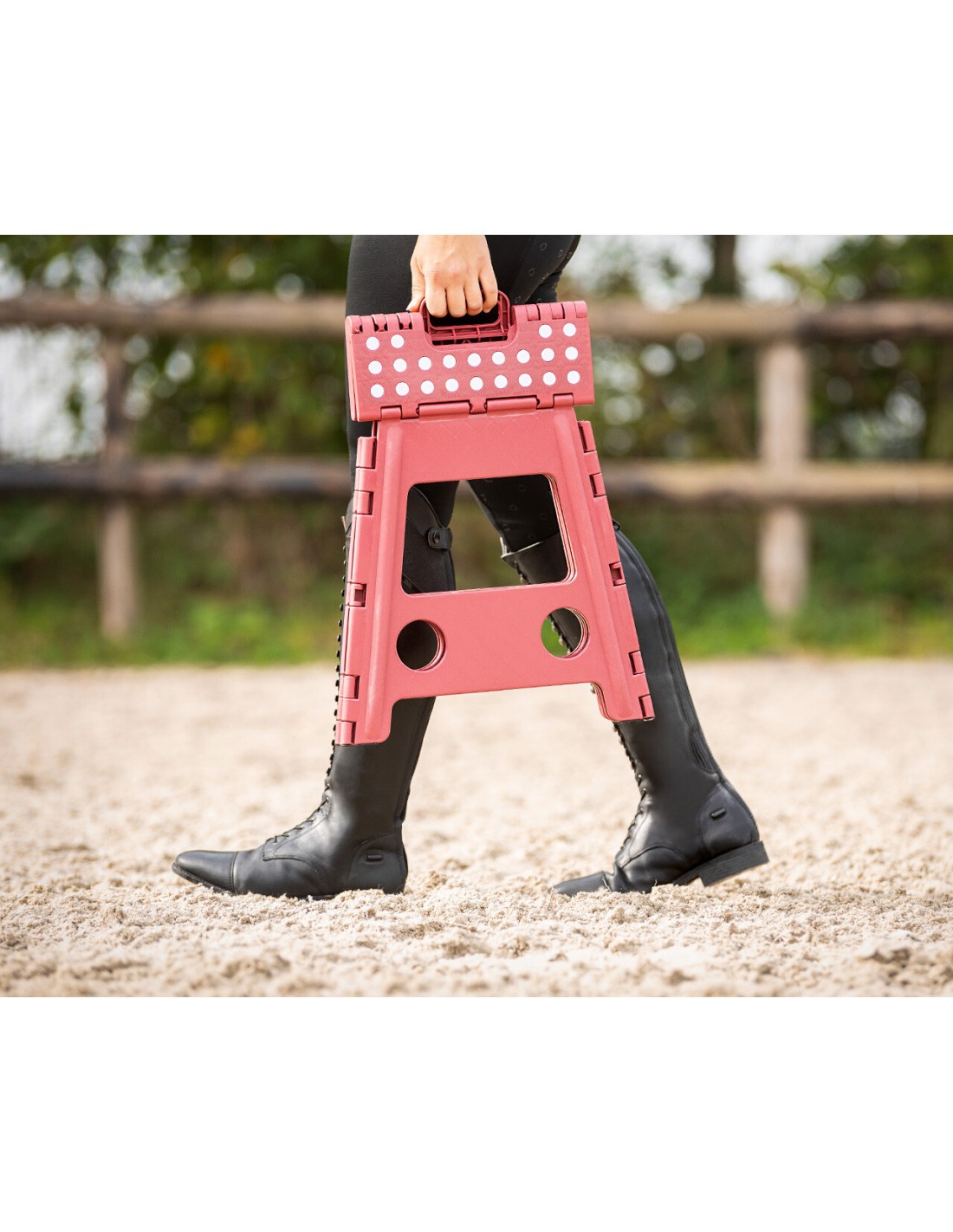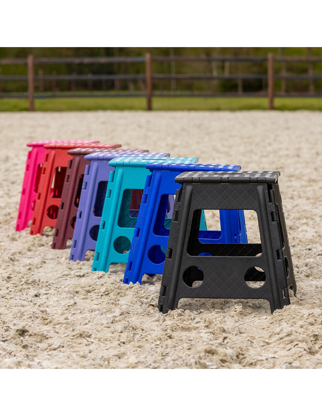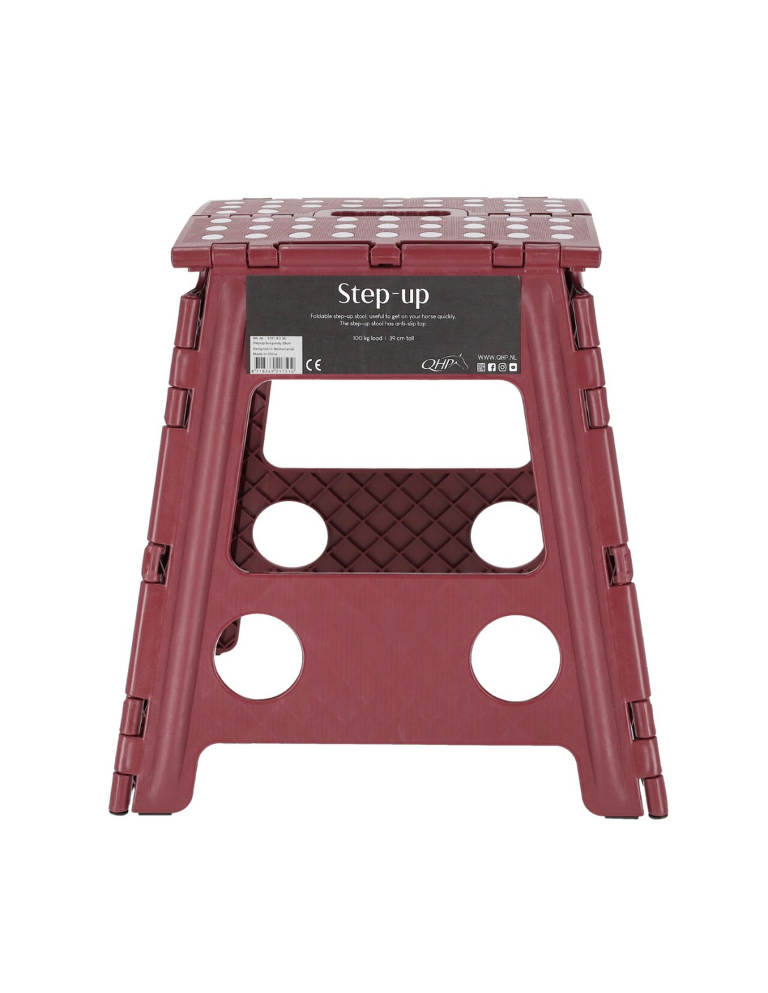 Material: polipropileno, etileno acetato de vinilo. Taburete plegable. Con superficie antideslizante en la parte superior. Dimensiones desplegado: 25,5 x 21,5 x 39 cm/10 x 8,5 x 15,4 pulgadas (largo x ancho x alto). Altura plegada: 53 cm. Carga máxima: 100 kg/220 lbs.