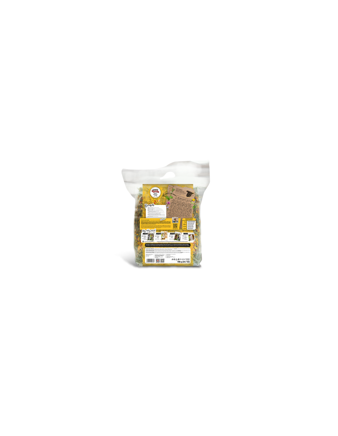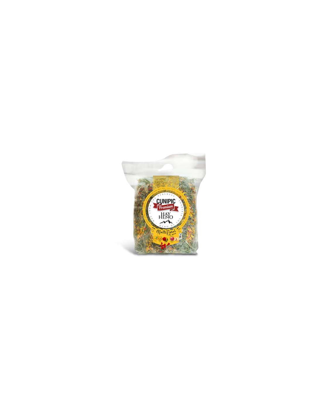 El heno premium multifloral es un regalo 100% natural para tus mascotas, libre de cualquier aditivo artificial. Su calidad premium se refleja en su textura fresca, fragancia aromática y sabor delicioso, lo que lo convierte en una delicia irresistible para tus amigos peludos.