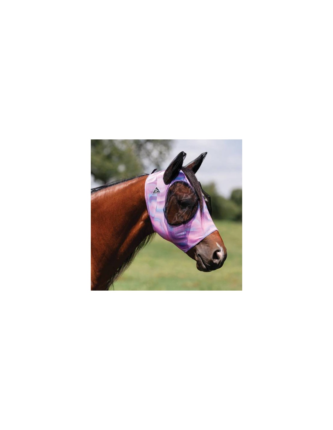 Diseñado pensando en la comodidad del caballo. La lycra lisa, elástica y transpirable se adapta perfectamente a la cara del caballo. La malla alrededor de los ojos y oídos permite una visión clara y mantiene alejadas a las moscas y los insectos.