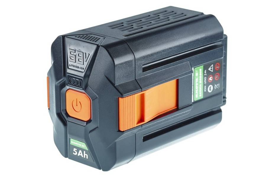 Batería de 58 Vatios de tecnología Ion-Litio de 5Ah. El tiempo de carga es muy reducido y posee un indicador LED del nivel de carga.