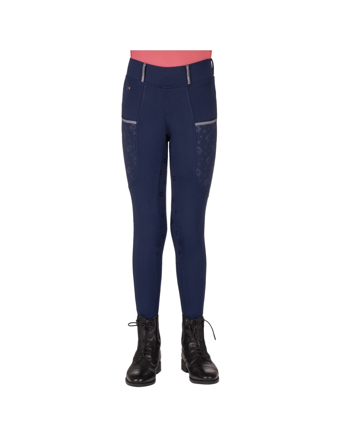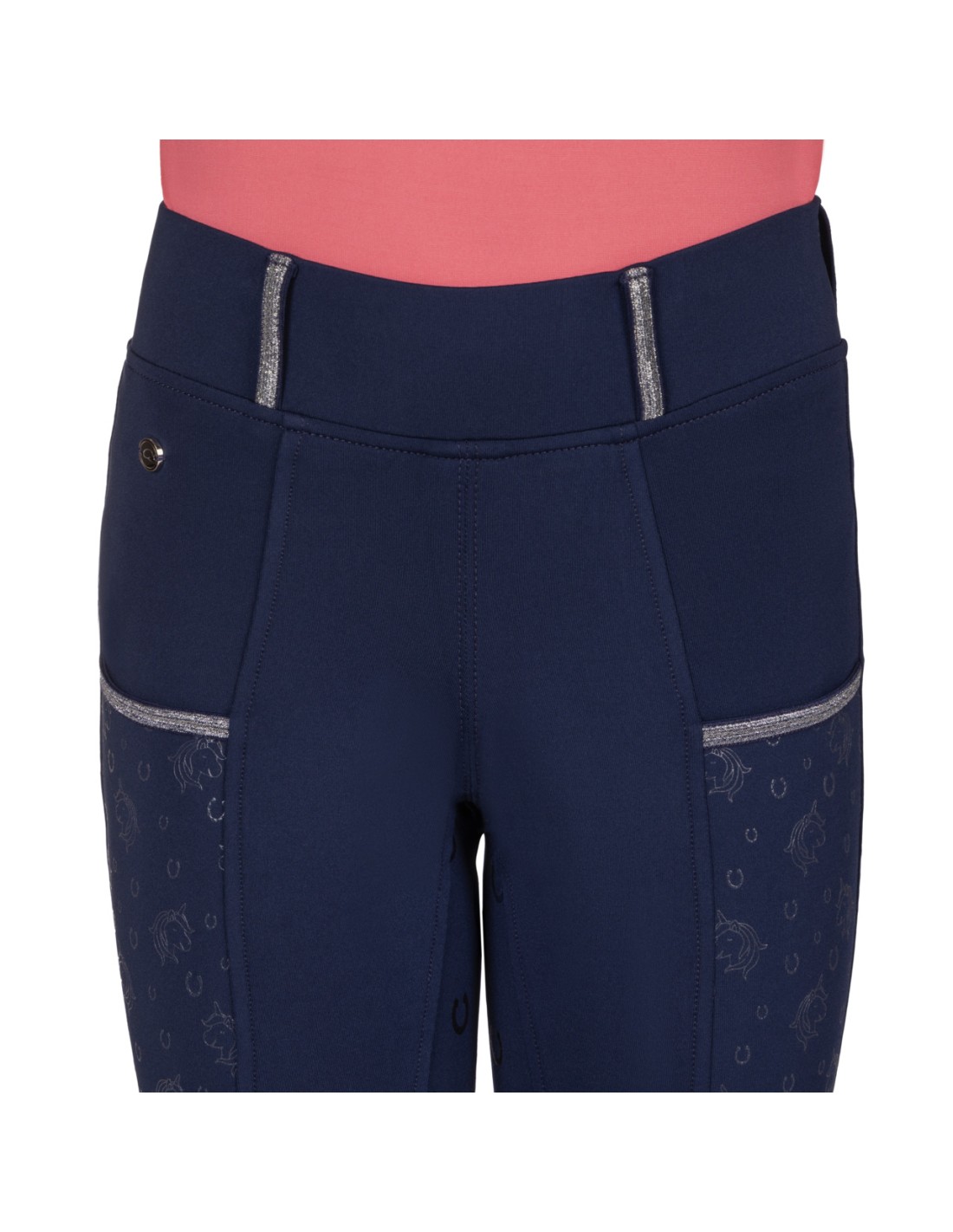 El borde de los bolsillos de las piernas está cubierto con tela brillante.