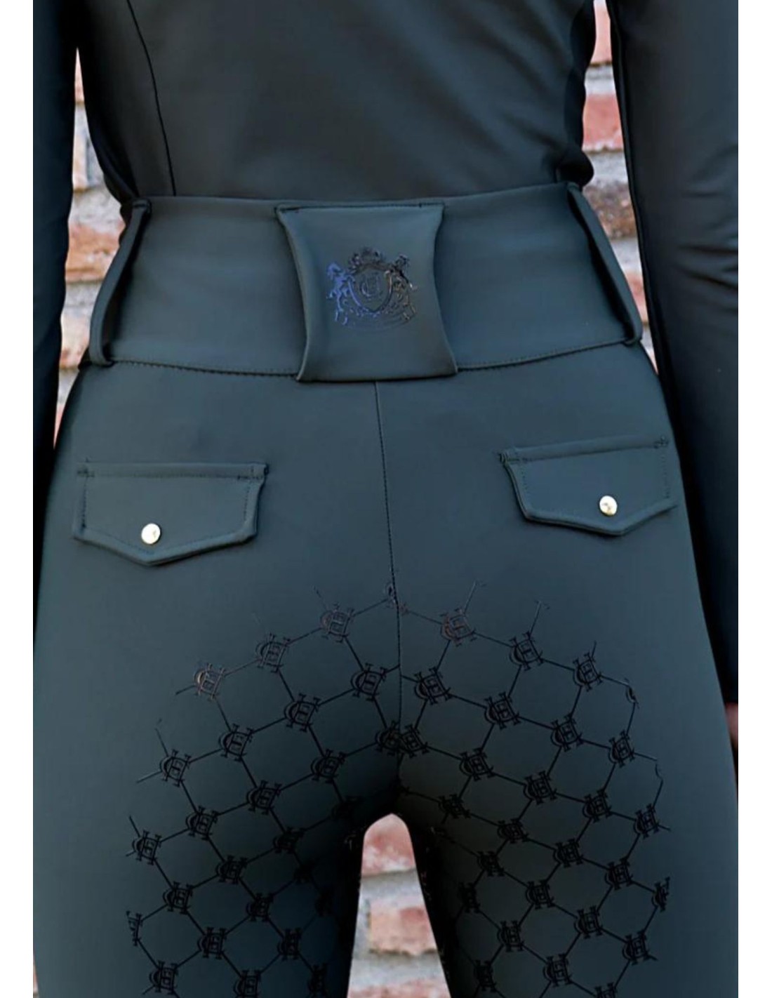 Cintura alta compresiva para poder centrarse en la monta y no tener que pensar en subirnos la parte trasera del pantalón.
