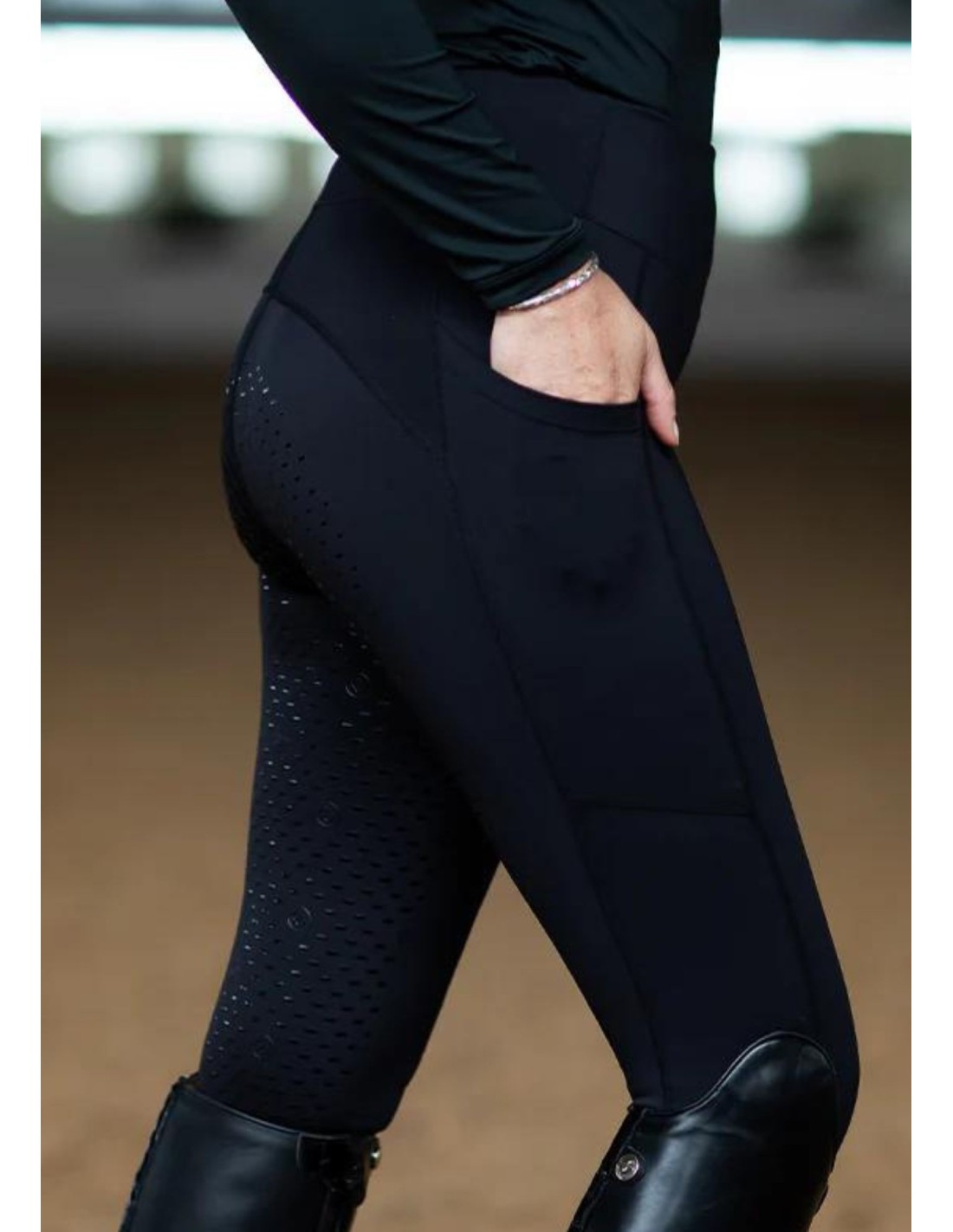 Este diseño está pensado para garantizar que el jinete pueda moverse libremente y cómodamente, a la vez que recibe el apoyo necesario para ayudarlo a rendir al máximo. Están equipadas con grandes bolsillos laterales en ambos lados, lo que facilita el almacenamiento de un teléfono. Están decoradas con un logotipo ES impreso tono sobre tono en el bolsillo izquierdo y un hermoso logotipo Equestrian Stockholm impreso tono sobre tono en el centro de la cinturilla.