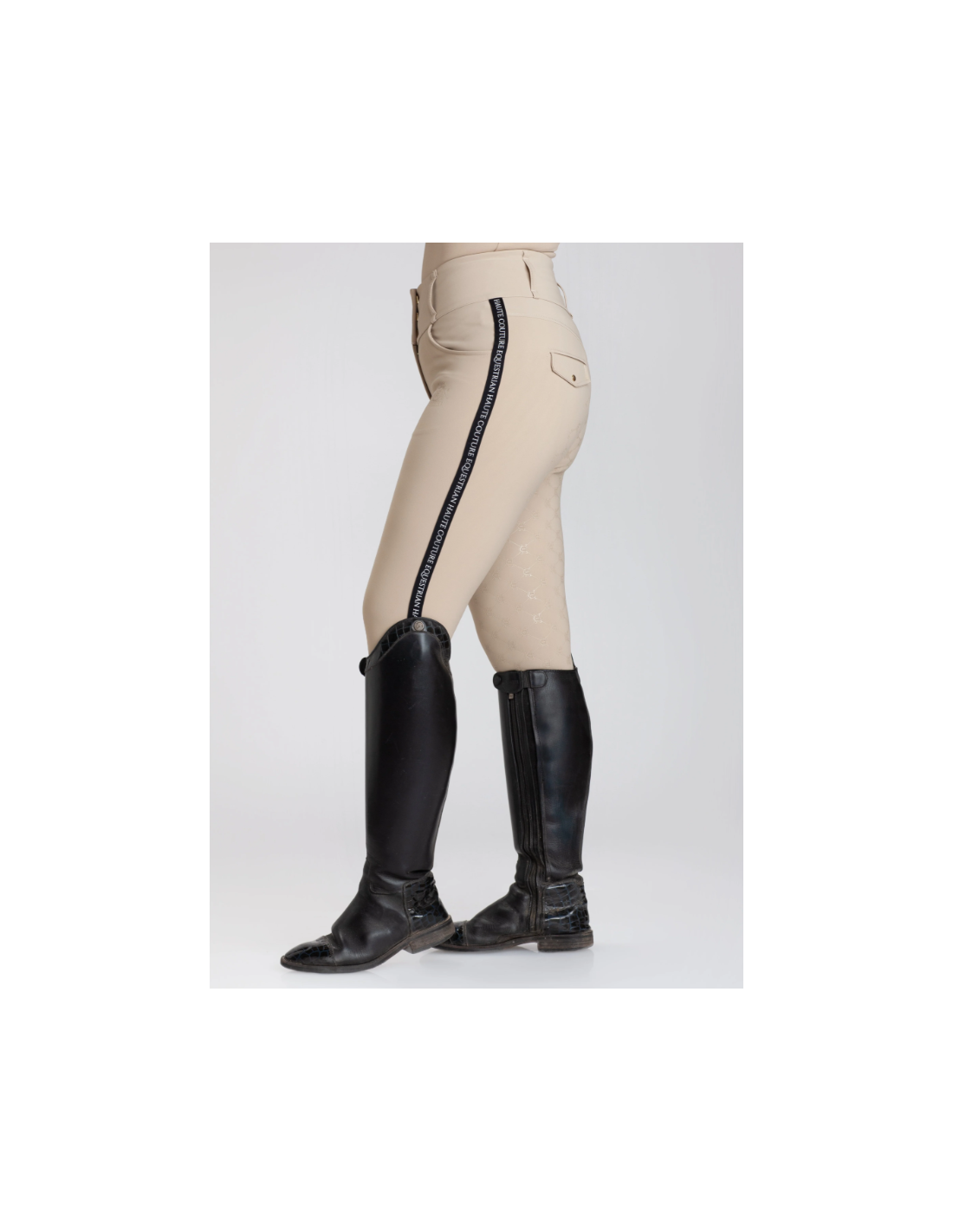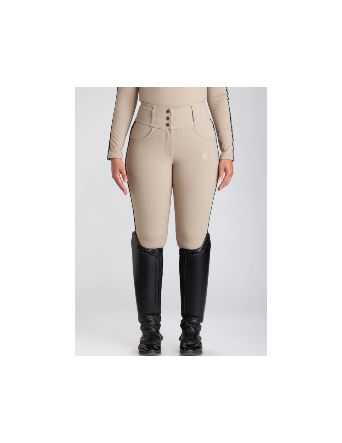 Cintura alta compresiva para poder centrarse en la monta y no tener que pensar en subirnos la parte trasera del pantalón.