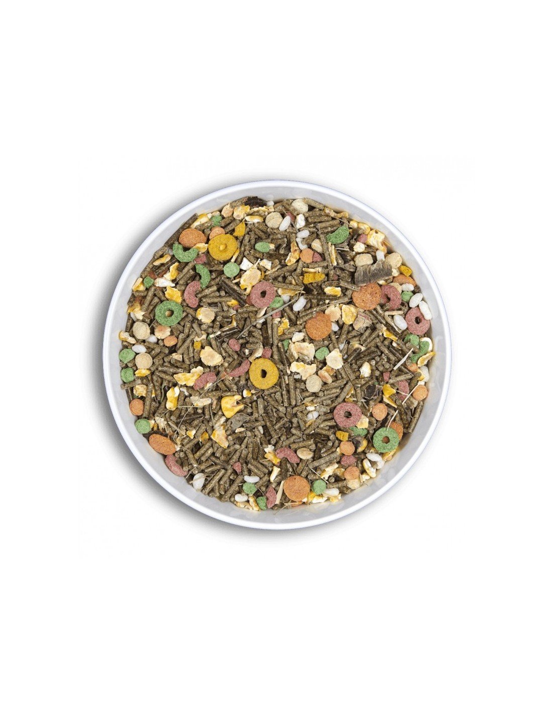 Esta compuesto por pellets completos y equilibrados especialmente creados para conejos baby. Este alimento se presenta en forma de barritas de 3 mm, su tamaño es adecuado al tamaño de sus pequeñas bocas. Está especialmente formulado para cuidar el sistema digestivo inmaduro de los pequeños conejos, tan sensible a situaciones estresantes como el destete o la llegada a un nuevo hogar.